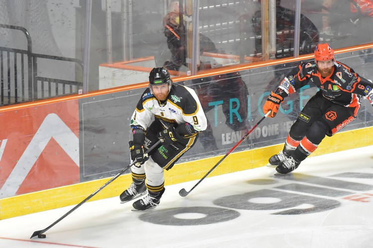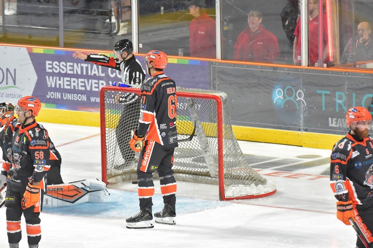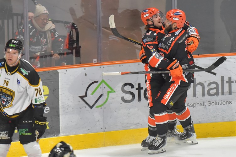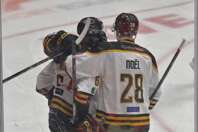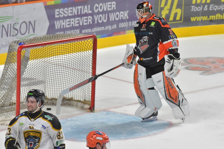 Just 2:41 into period three, David Noël’s shot from the top of the circle beat McAdam clean to give Nottingham a two-goal cushion. The Steelers responded through Brian Diffley, whose deflected effort off a faceoff found its way past Carr to make it 3-2 with just over nine and a half minutes remaining.