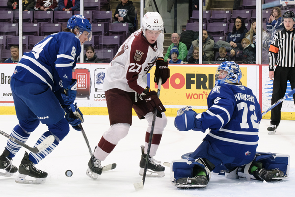 In the final minutes of the second period, the Petes nearly retook the lead shorthanded. Jack Ivankovic snatched a dump in from the air, before attempting to drop the puck and slide it to his defender. Caden Taylor flew in to intercept the pass, but his shot slid through the crease.