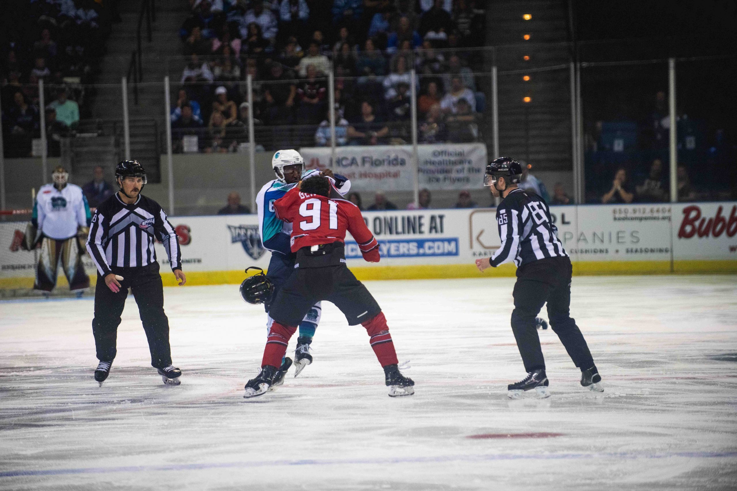 Three seconds later, the Ice Flyers’ Malik Johnson, one of the Ice Flyers returning players, got the crowd and his team energized by dropping the gloves against the Bulls’ Kishaun Gervais instantly after the ensuing faceoff.