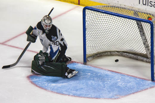 Devin Williams stopped 21 of 22 shots, backstopping a 3-1 Oilers win on Sunday at the BOK Center / Photo by Les Stockton (PHN)