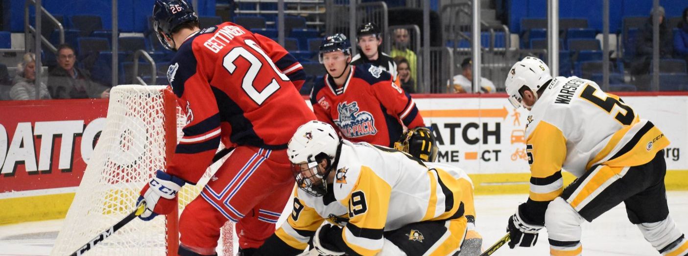 A Wolf Pack franchise-record 12-game home winning streak came to an end Wednesday night at the XL Center, in a 2-1 loss to the Wilkes-Barre/Scranton Penguins.