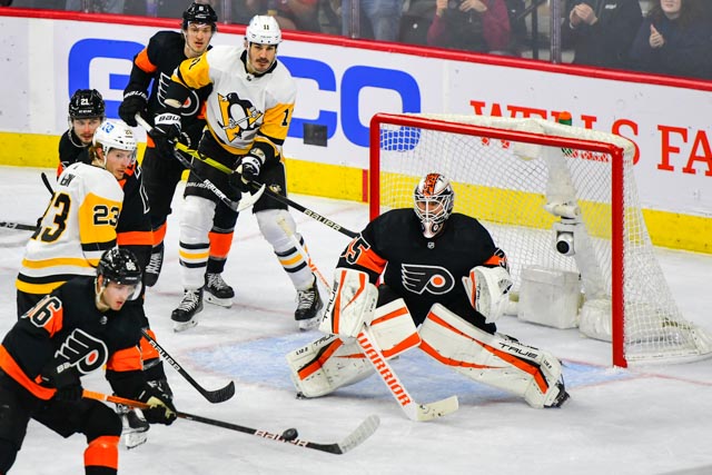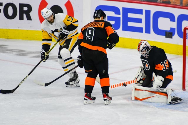 Sidney Crosby was the lone goal scorer for Pittsburgh, his goal came after the Flyers had built a 3-0 lead.