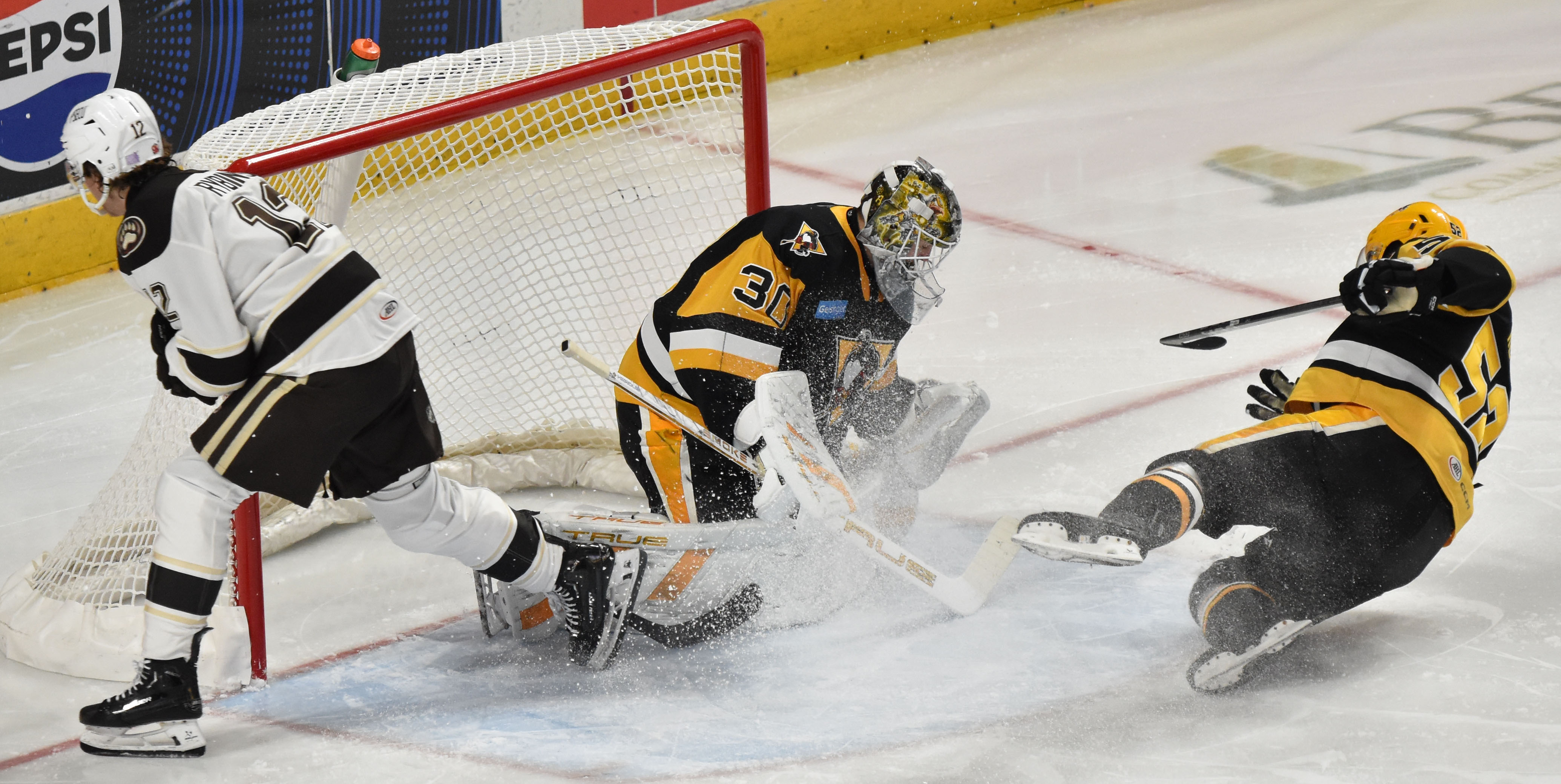Hershey Bears vs WBS Penguins Published November 30, 2025 at 4140 × 2081 in Penguins fall in Hershey Saturday, November 29, 2025, the Hershey Bears vs the WBS Penguins. The Bears beat the Penguins by the score of 6-2.