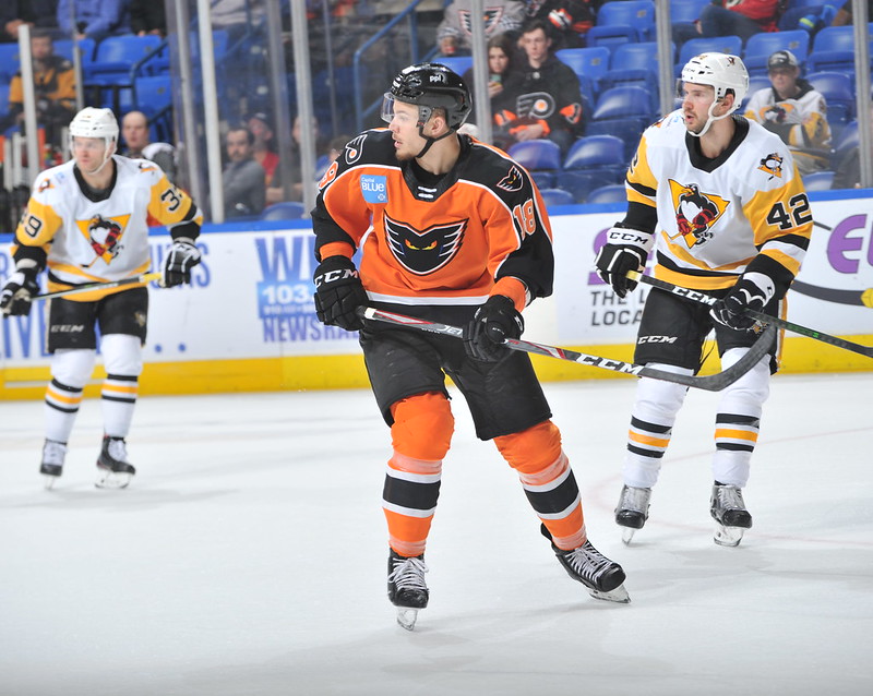 Wilkes-Barre, Pa. – The Lehigh Valley Phantoms pressured for yet another third-period comeback but the Wilkes-Barre/Scranton Penguins held off the late charge and then tacked on a couple tallies in the game’s closing minutes to pull away for a 6-2 win on Wednesday night at Mohegan Sun Arena.