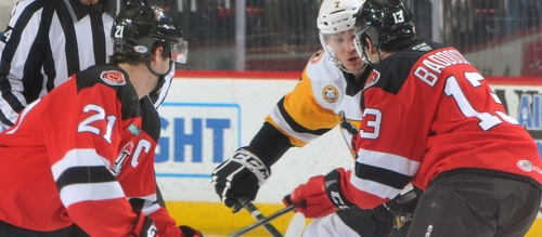 Ryan Haggerty buried another one for Wilkes-Barre/Scranton at 2:01 of the second stanza, making it 3-0. Two minutes later, the Devils notched their first goal of the night with a man advantage marker by Ryan Schmelzer, only to let Johnson reestablish the Penguins’ three-goal lead at 12:15 of the middle frame.
