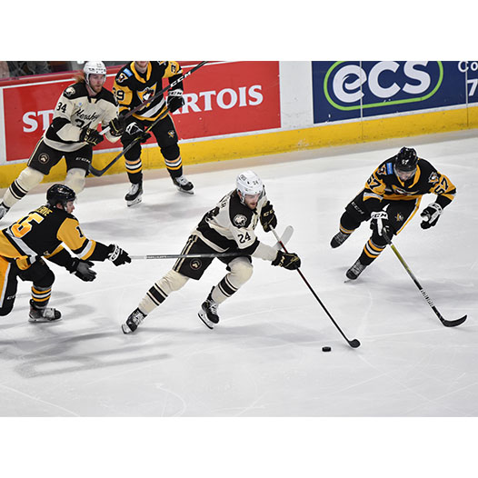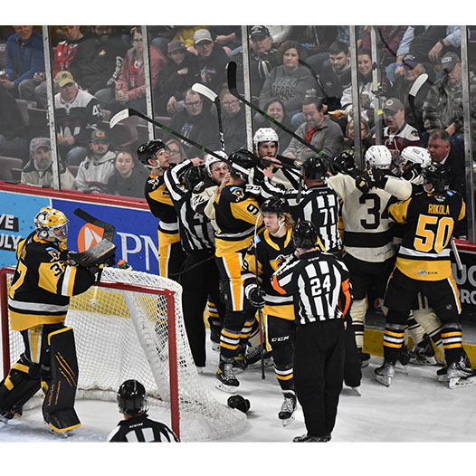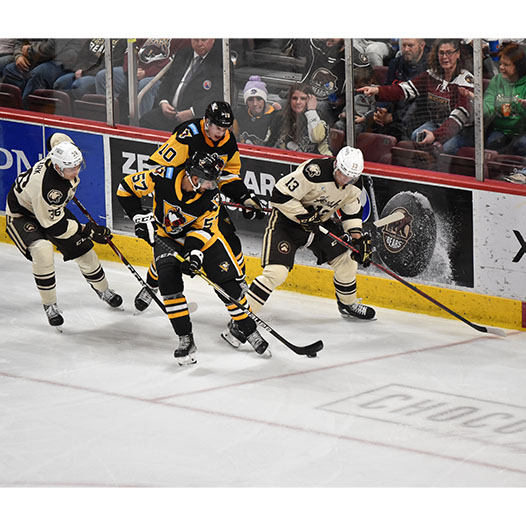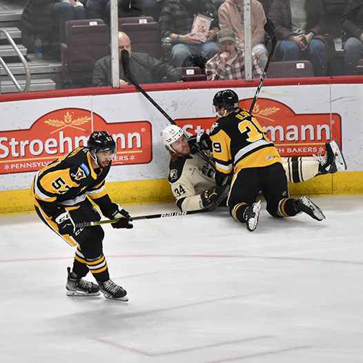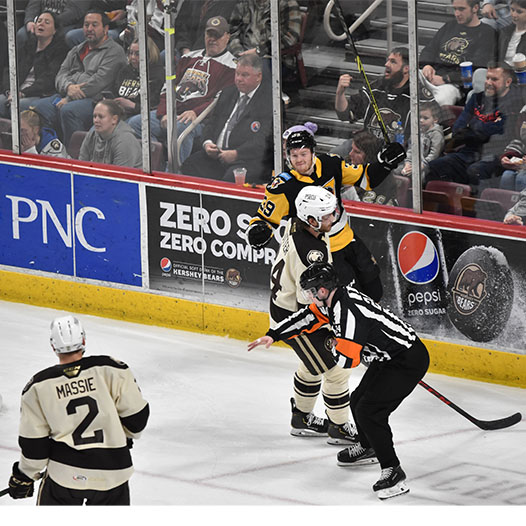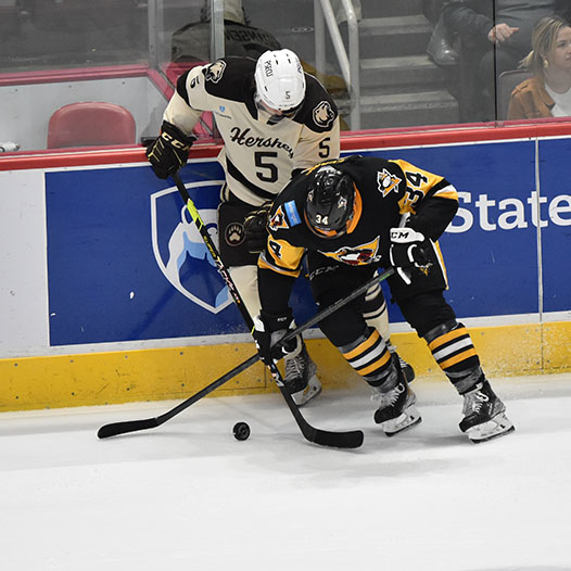 Shots favored Hershey, 27-25. The Bears were 0-for-3 on the power play while the Pens were 0-for-5.