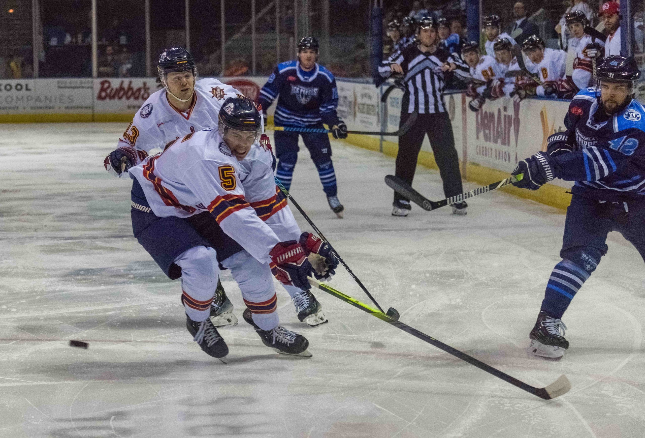 The game itself contained a unique element after the Rivermen and Ice Flyers agreed upon a six-player trade on New Year’s Day with the Ice Flyers getting veteran forward Joseph Widmar and rookie Adam Keyes, along with defenseman Dale Deon. Widmar had six goals and league-high 24 assists for the Rivermen, pushing him to second in league scoring prior to the game.