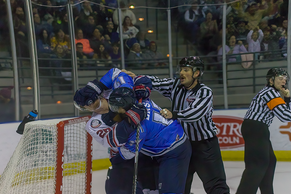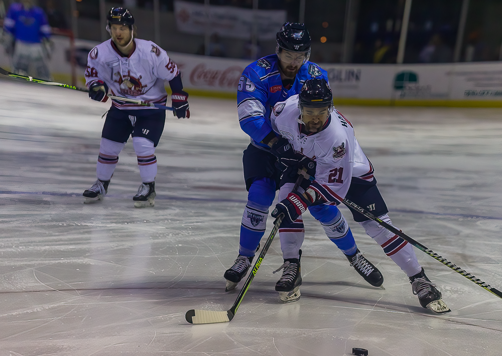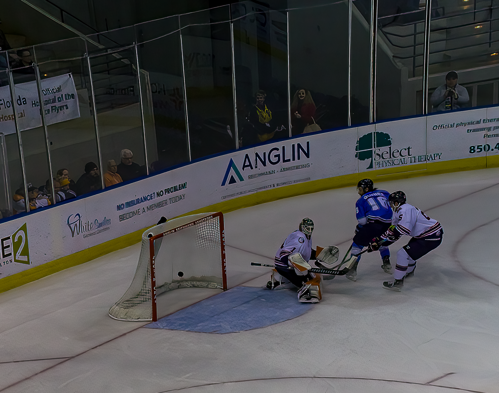 Despite out-shooting the Ice Flyers 14-9 in the middle period, the Rivermen could not find the equalizer in the second. Both teams struck the post, the Rivermen on an even-strength backhanded shot, the Ice Flyers on a short-handed rush.