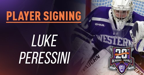 READING, PA – The Reading Royals have signed rookie goaltender Luke Peressini to his first professional contract, the team announced Tuesday. Reading has agreed to ECHL deals with ten players and Peressini is the first netminder to sign for the team’s 20th anniversary campaign.