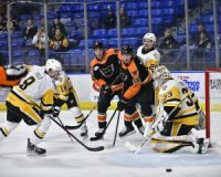 Wilkes-Barre/Scranton (11-16-4) out shot the Phantoms in the first period 10-7 but Lehigh Valley perhaps had the best chances of the opening frame on breakaways for newcomer Alex Kile and Wade Allison. Both were stuffed by Penguins goalie Alex D’Orio.