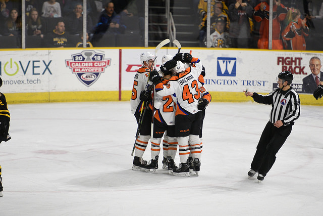 The Providence Bruins fell into practically a third/fourth-place tie with the Charlotte Checkers. Whichever team finishes in fourth in the Atlantic will be the first-round playoff opponent for the Phantoms in the opening Best-of-Five series.