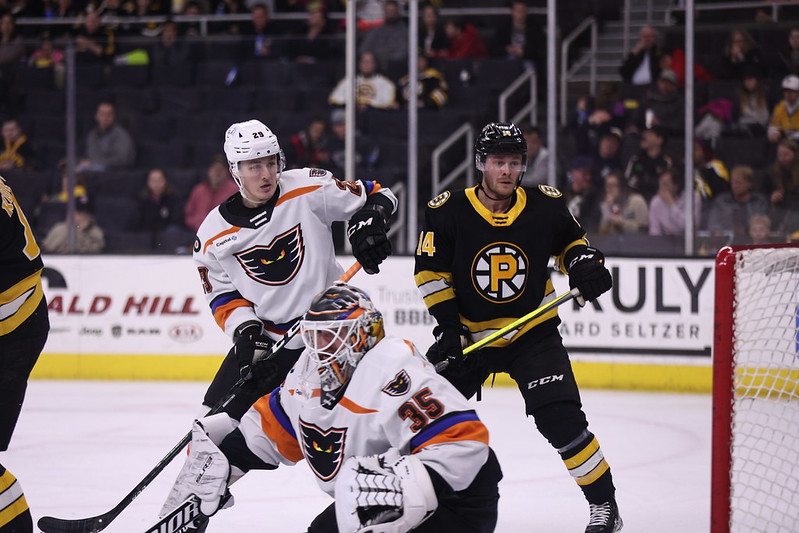 Providence, RI – The Lehigh Valley Phantoms and Providence Bruins raced out to an exciting and high-scoring start with five combined goals in the first 13 minutes after which the Bruins rallied from behind to post a 5-4 overtime win on Tuesday night at Dunkin’ Donuts Center. Johnny Beecher scored the go-ahead goal in the second period and then added the 3-on-3 winner for the Bruins.