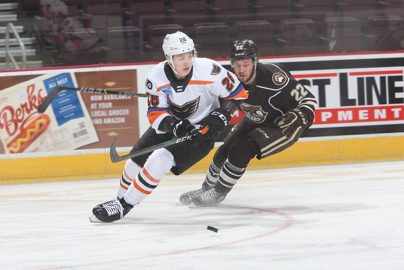 Hershey drew first blood at 13:02 of the second period on a two-on-one with Kody Clark deflecting Eddie Wittchow’s centering pass for a 1-0 lead. And that advantage held up almost the rest of the way before the Never-Say-Die Phantoms eventually broke through.