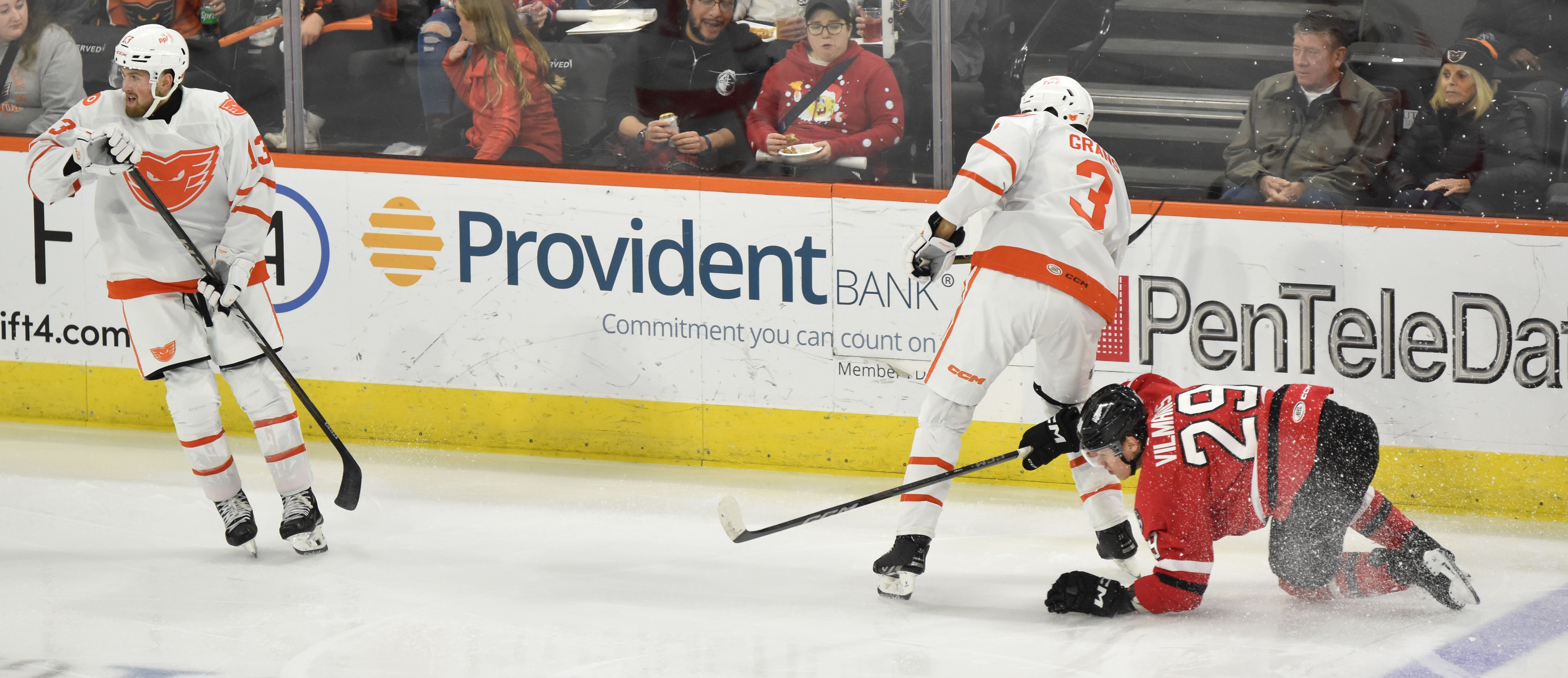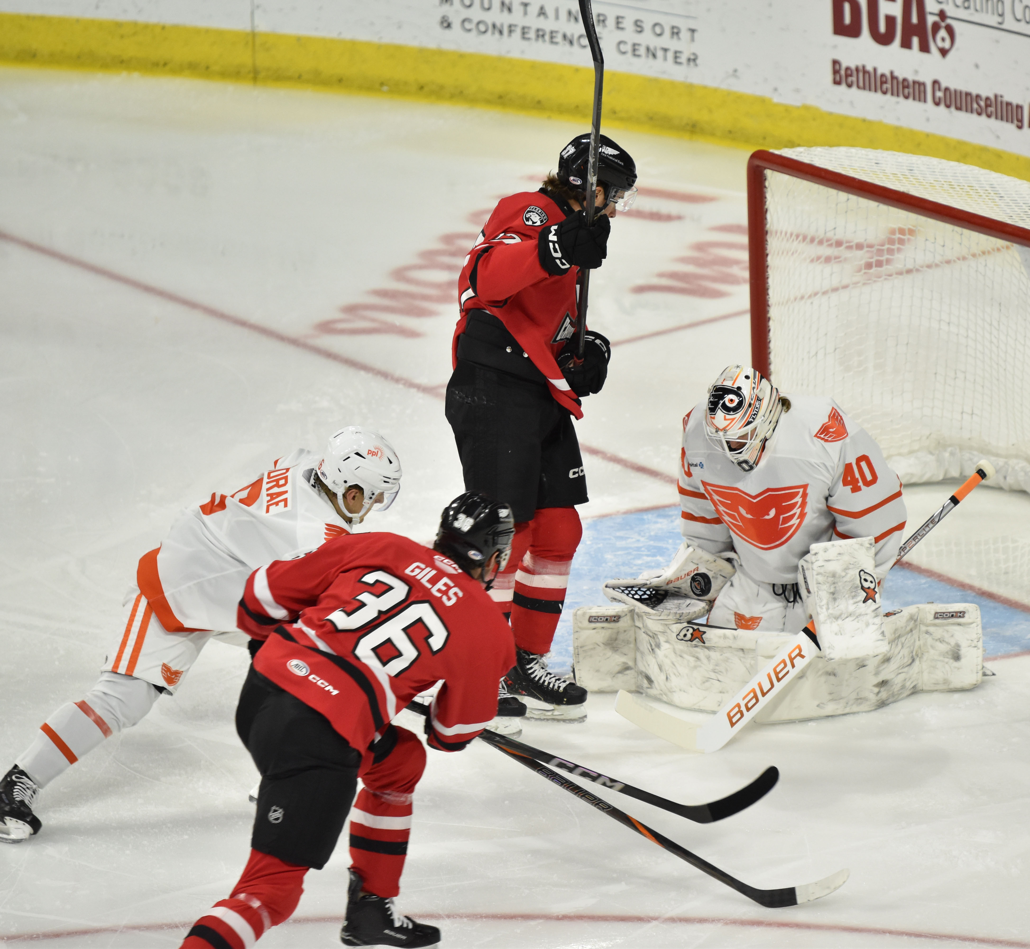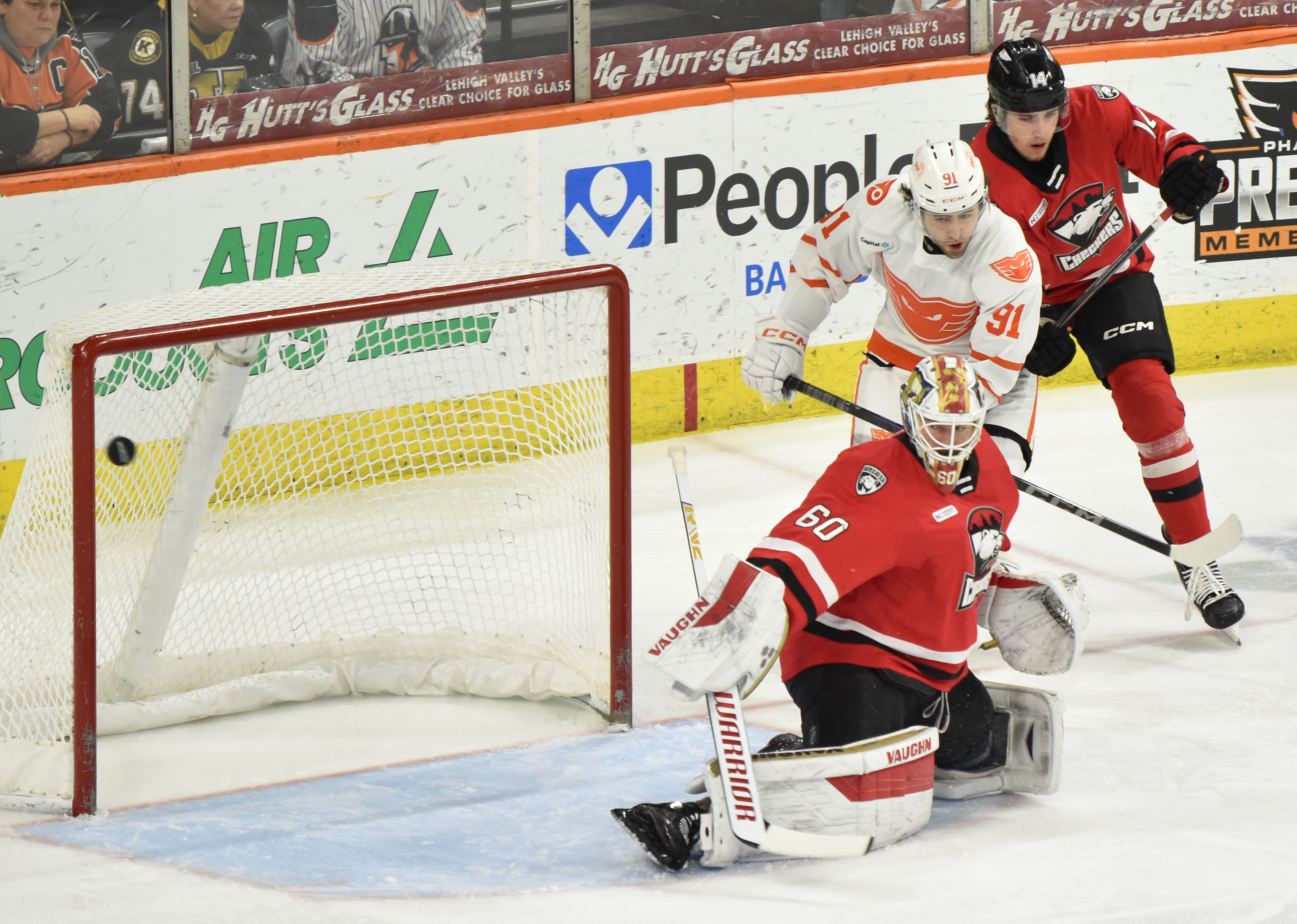 Garrett Wilson (7th) got to the net-front for a rebound goal off a Louie Belpedio point shot to get the Phantoms on the board at 13:00 into the second period at 2-1. The Phantoms’ captain has been the team’s hottest scorer of late with four goals in the last eight games and five goals in the last 11.