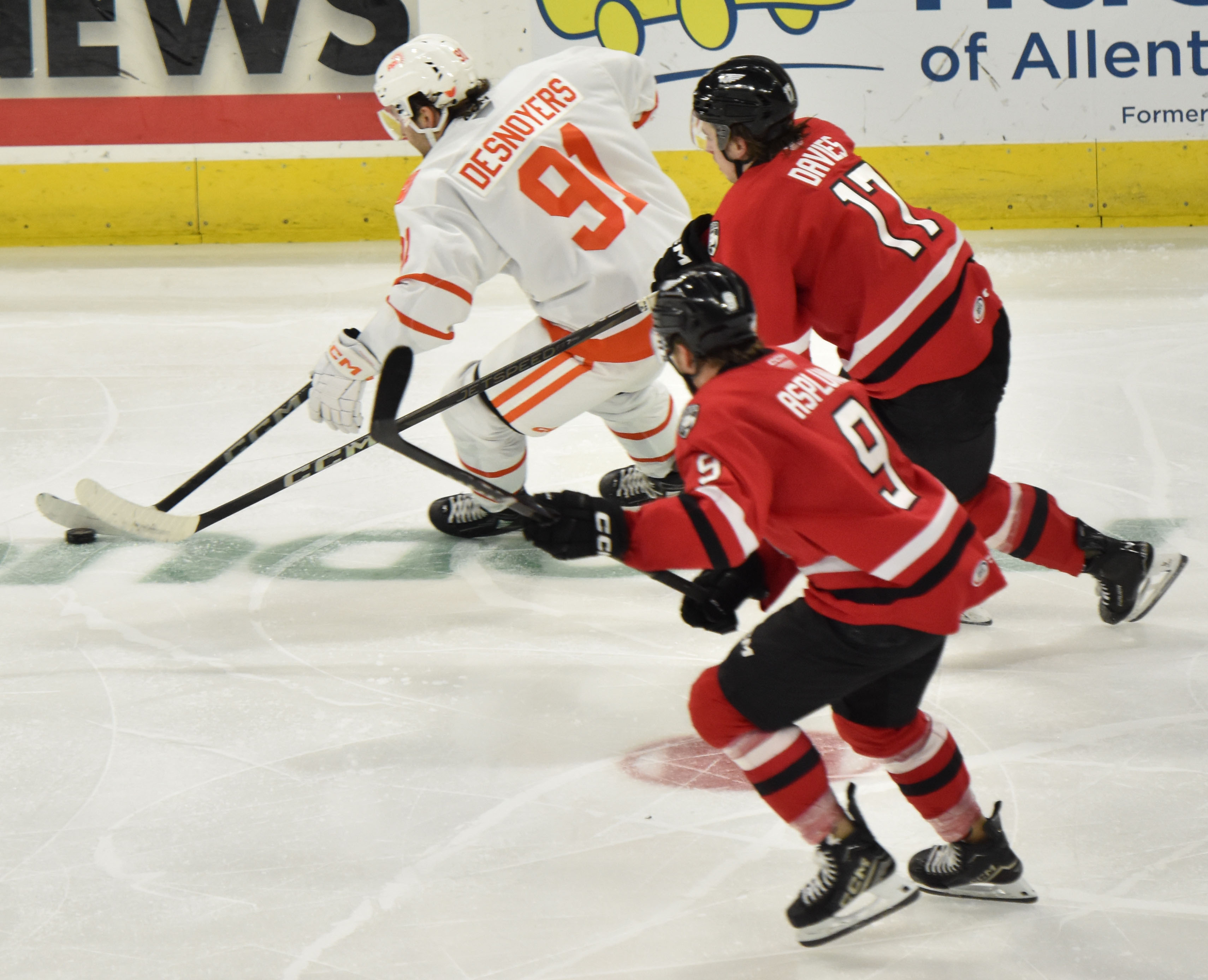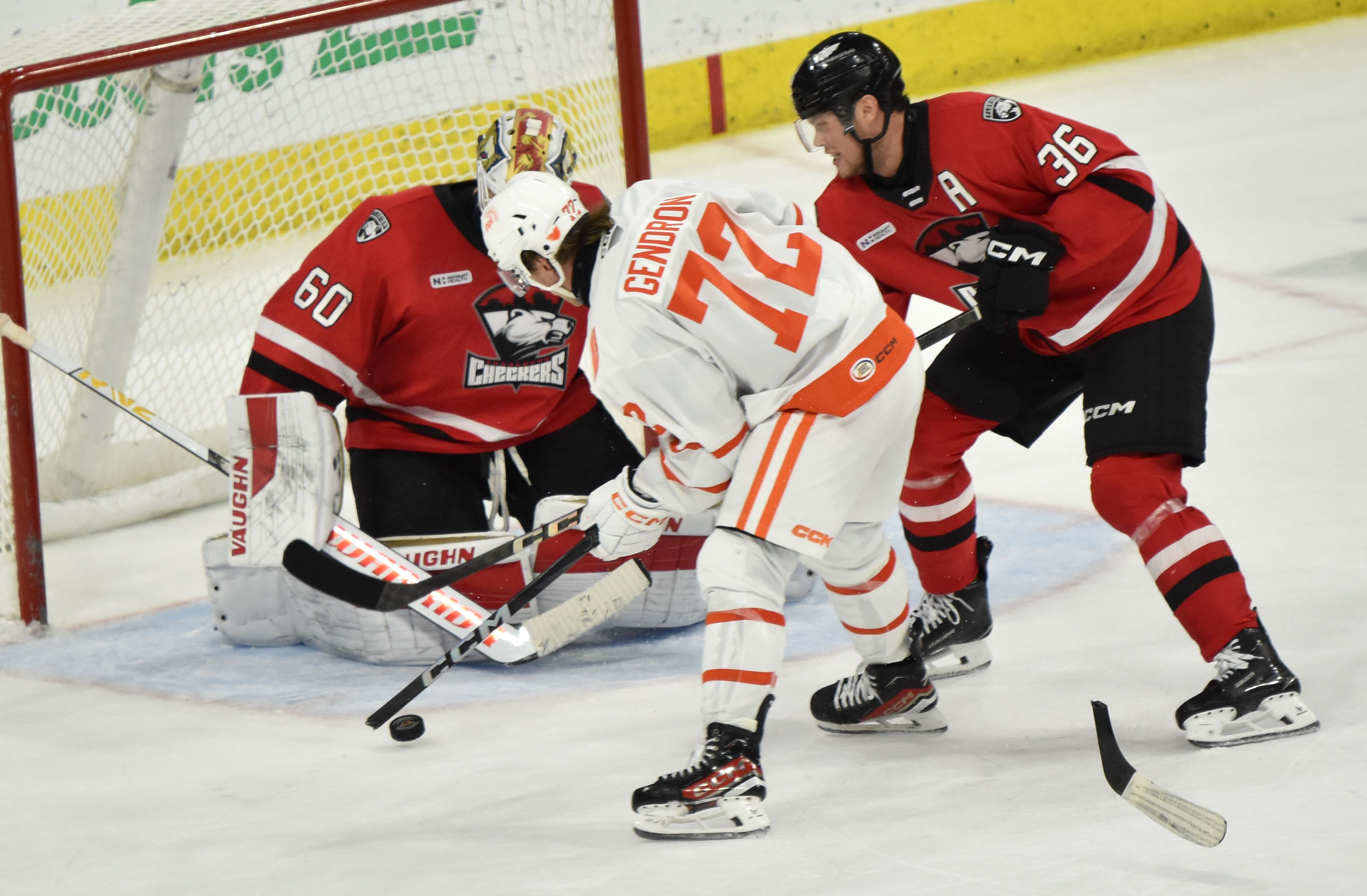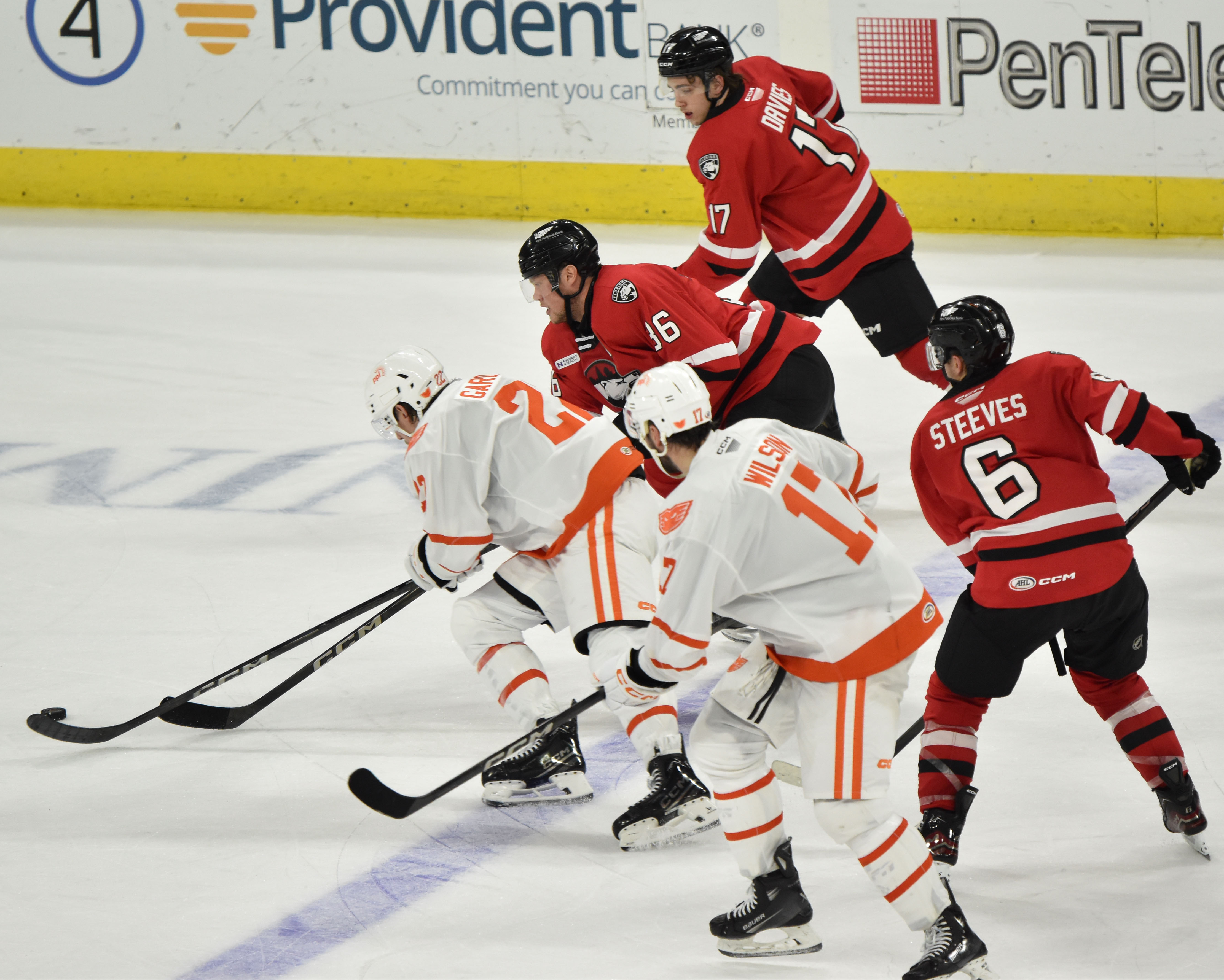 Zayde Wisdom connected with Elliot Desnoyers on the move whose shot handcuffed goaltender Chris Dreidger and deflected high in the air. By the time it came down, Avon successfully got a touch to knock it forward and off a Charlotte leg and into the net to make it 4-2 at 7:14 into the final frame.