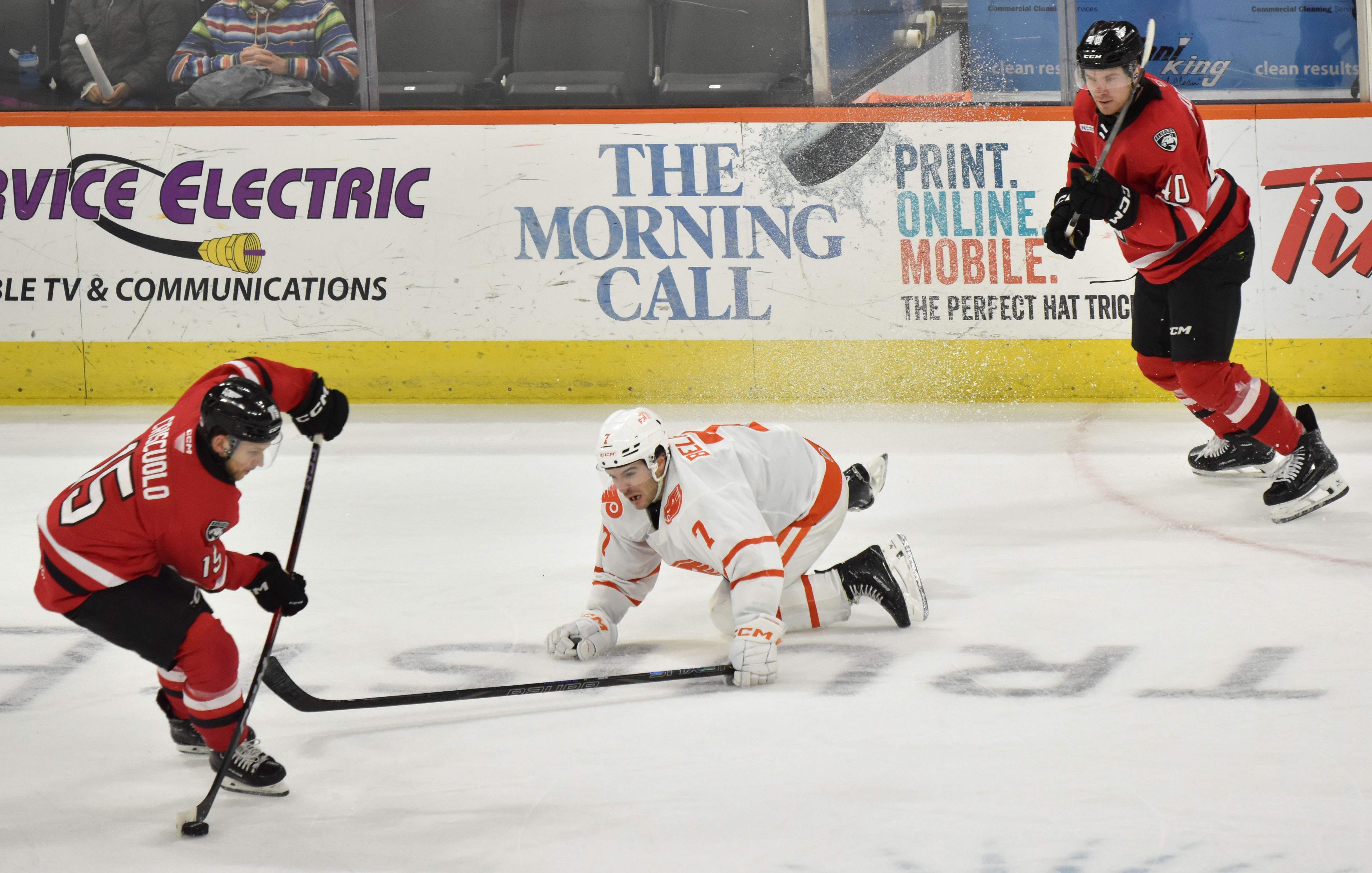 Allentown, PA – The Lehigh Valley Phantoms had their three-game home win streak come to a close in the 2024 finale as the visiting Charlotte Checkers used a pair of shorthanded goals from John Leonard to vault past the Phantoms 6-3 in the annual New Year’s Eve game at PPL Center.
