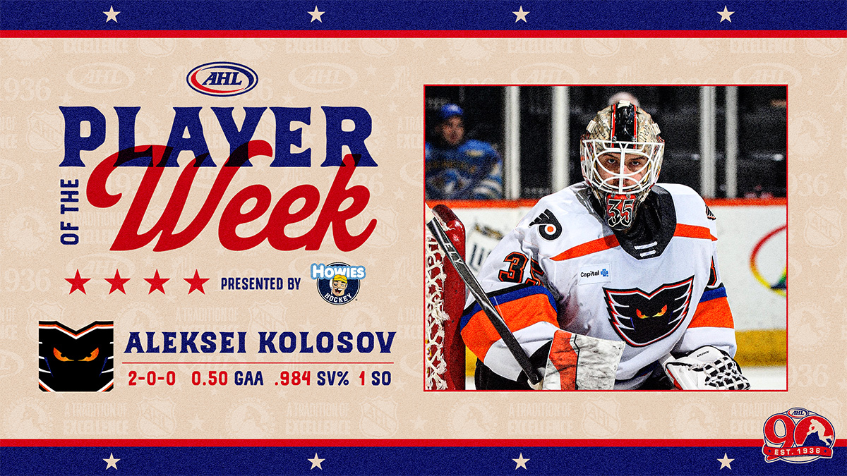 SPRINGFIELD, Mass. … The American Hockey League announced today that Lehigh Valley Phantoms goaltender Aleksei Kolosov has been selected as the Howies Hockey Tape/AHL Player of the Week for the period ending January 4, 2026.