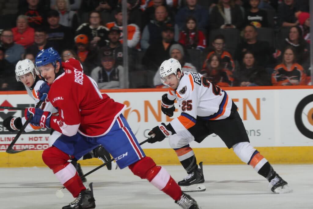 Allentown, PA – The Phantoms almost pulled it off. A wild, see-saw affair saw both teams trade goals and leads back-and-forth in a Saturday night thriller with the Laval Rocket ultimately enjoying the last laugh in a 5-4 shootout decision at PPL Center on Gritty Night. Lehigh Valley shockingly came back from a 3-1 deficit to take a 4-3 lead. But the first-place Rocket weren’t done and Sammy Blais scored a tying goal with 36.6 seconds left and then tacked on the only goal in the shootout to secure the bonus standings point.