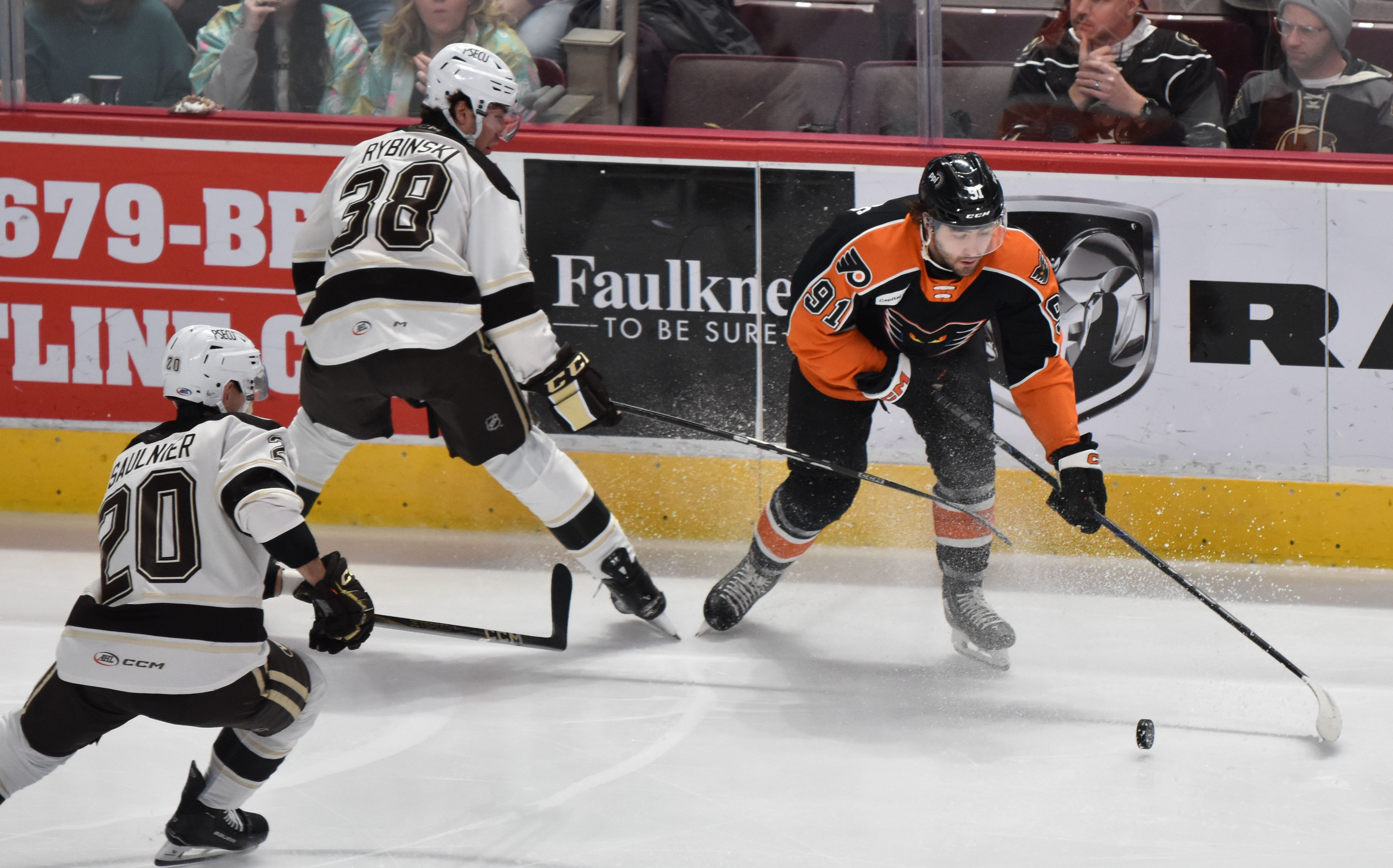 Hershey, PA – The Lehigh Valley Phantoms raced out to a 3-1 lead in the first period and then held off a late push by the Hershey Bears to hang on for a 5-4 win at GIANT Center on Tuesday night. The Phantoms have won three straight to open 2025 and have also won seven of their last 10 games.