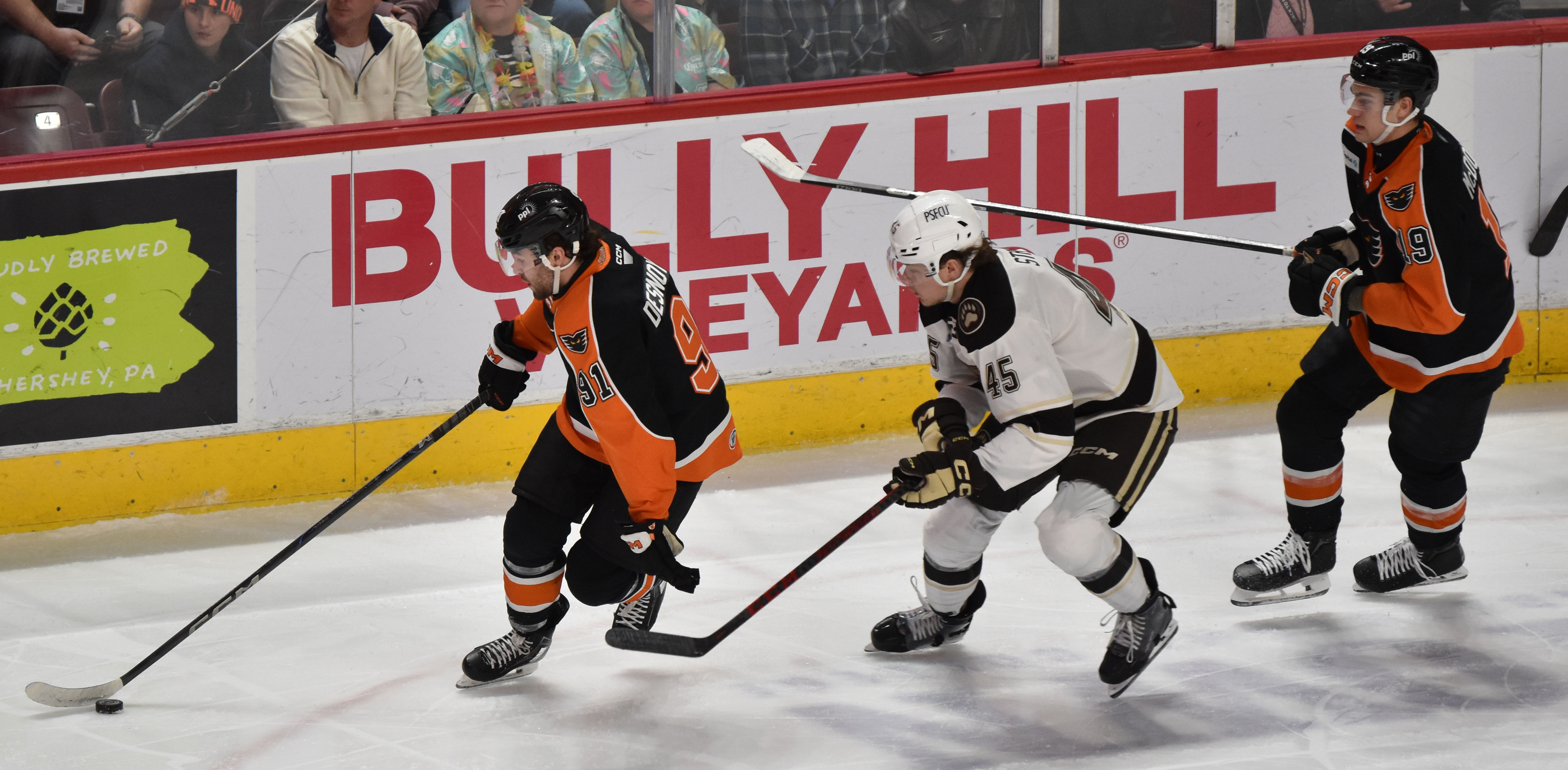 Leading 5-4 in the third period, the Phantoms killed four Hershey power plays including three in a row in the early minutes of the frame and then a 6-on-4 in the final seconds.
