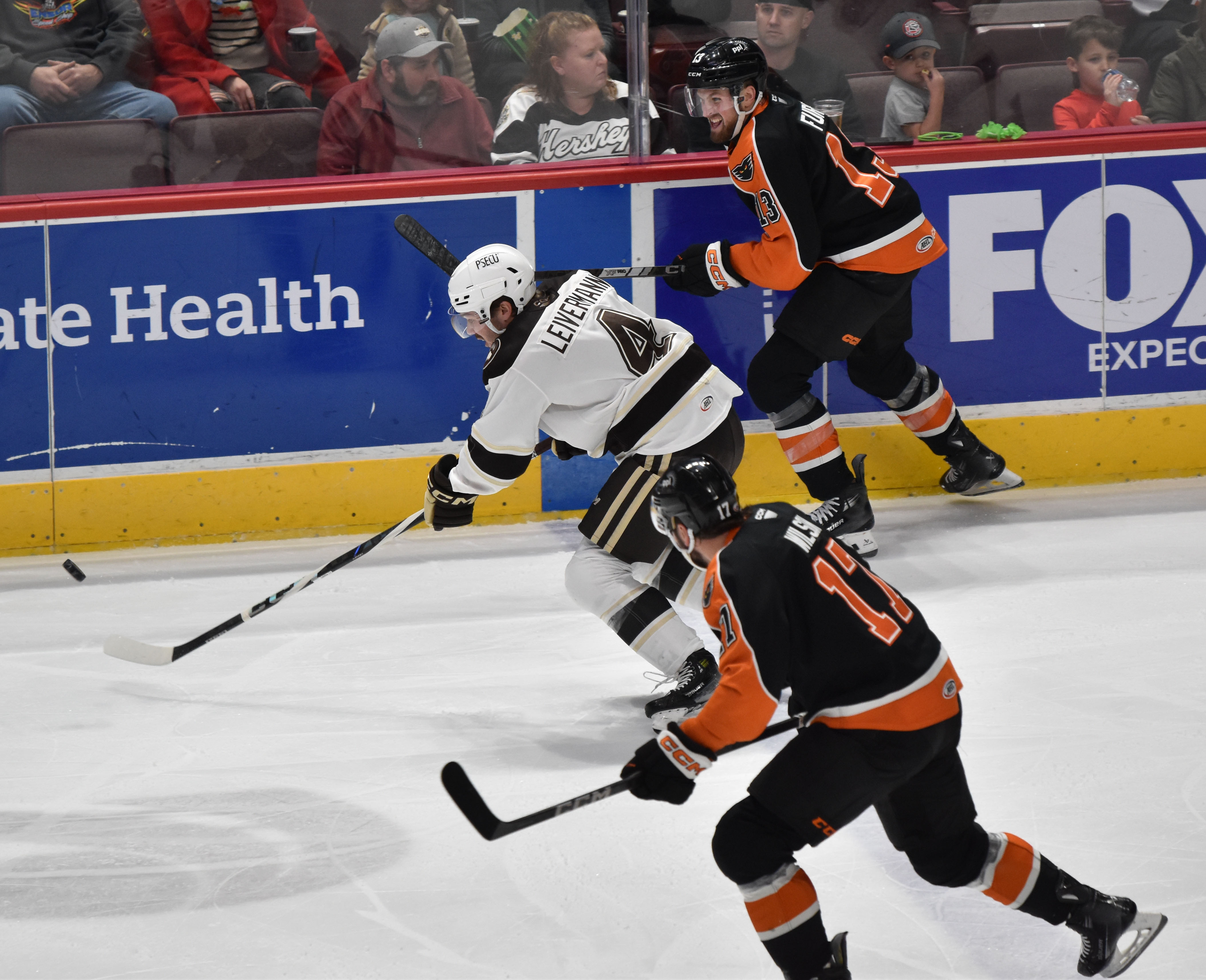 Lehigh Valley (16-13-5) has won three straight away games for the first time this season as the Phantoms improved to 3-2-1 against their I-78 rivals and also to 2-1-0 in Chocolatetown.
