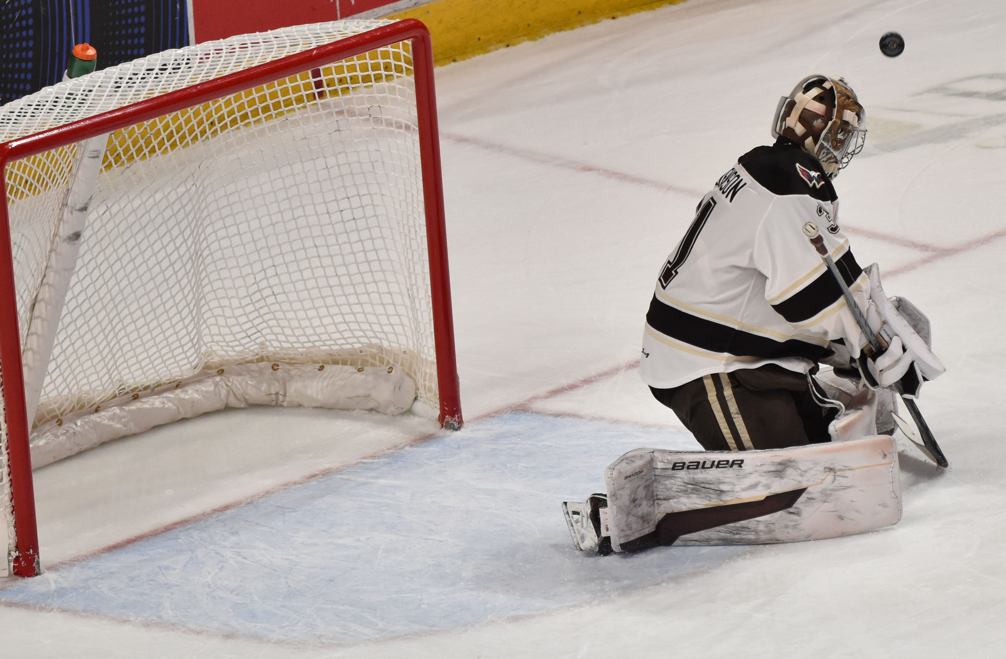 Sgarbossa would get the next one as well at 1:06 into the third period after a pickoff in front of the net. Petersen initially made a spectacular save to deny Alex Limoges but Sgarbossa was there with a follow-up try to cut Lehigh Valley’s lead to 5-4. And there were still almost 19 minutes left in the game.
