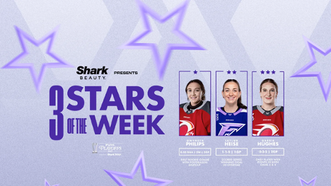 NEW YORK AND TORONTO – Ottawa Charge goaltender Gwyneth Philips, Minnesota Frost forward Taylor Heise and Ottawa forward Gabbie Hughes have been named the Professional Women’s Hockey League (PWHL) 3 Stars of the Week presented by Shark Beauty Canada following games from May 12-May 18.