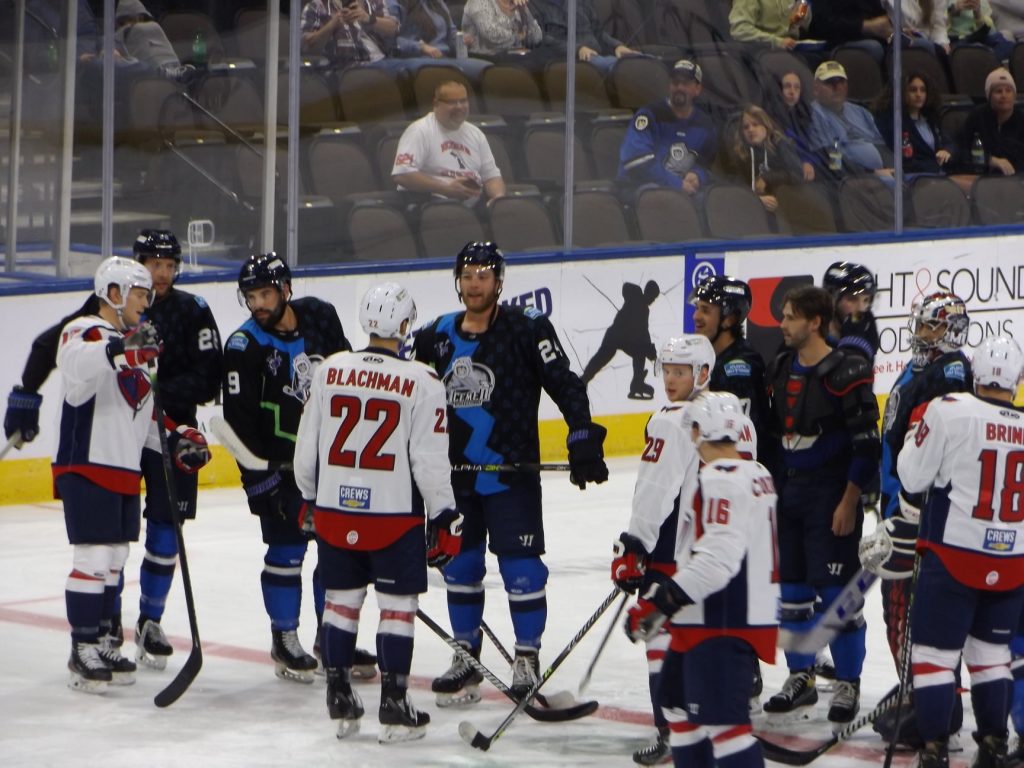 The Stingrays pulled within 4-2 halfway through the final period when Carter Cowlthorp turned a defensive misplay into his sixth of the season. Cowlthorp went hard for a loose puck and from the base of the left circle fired the biscuit between Williams’ legs for the tally.