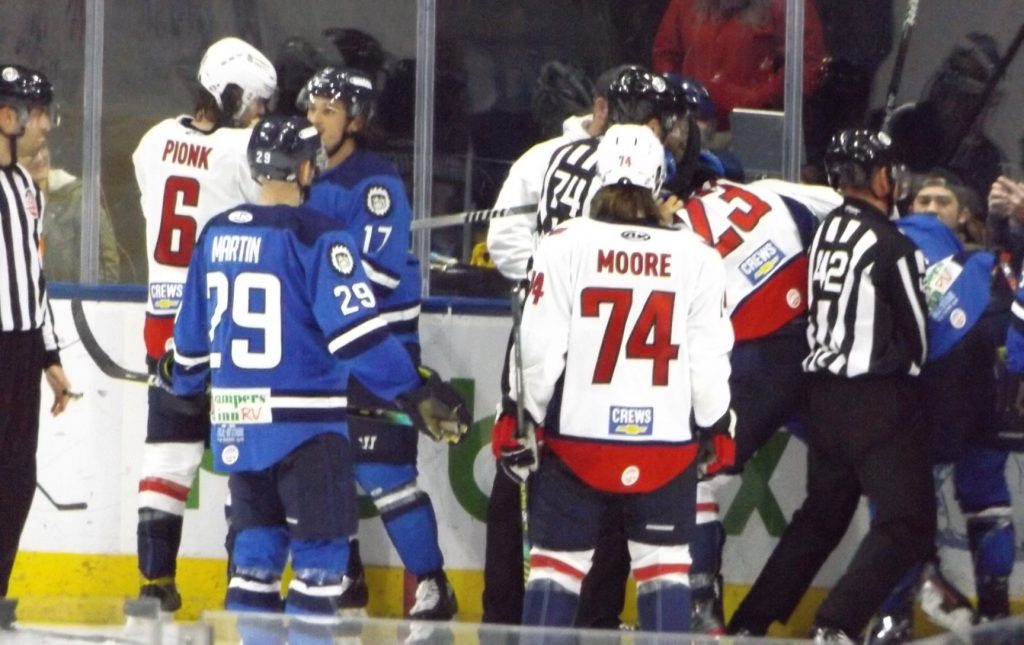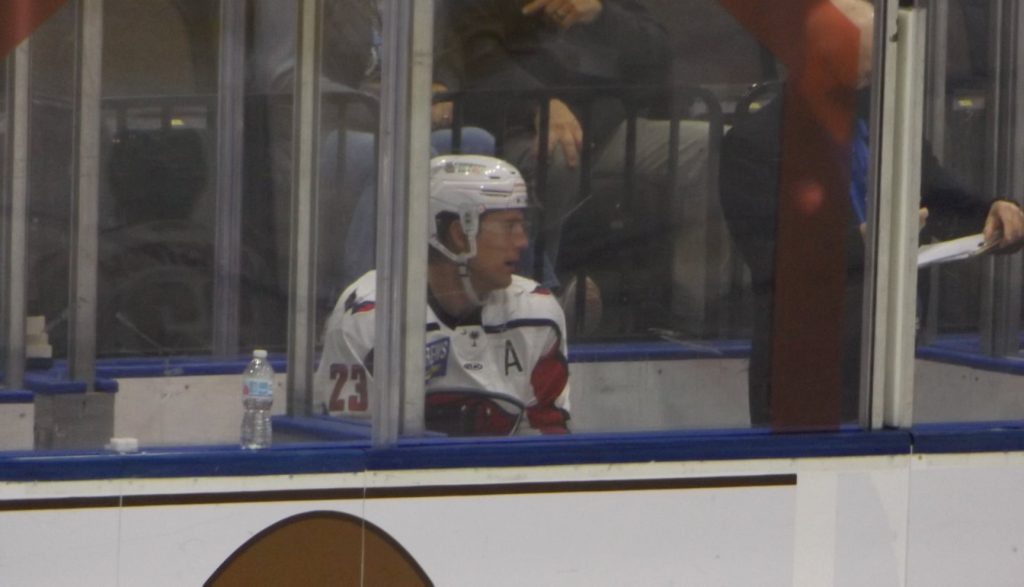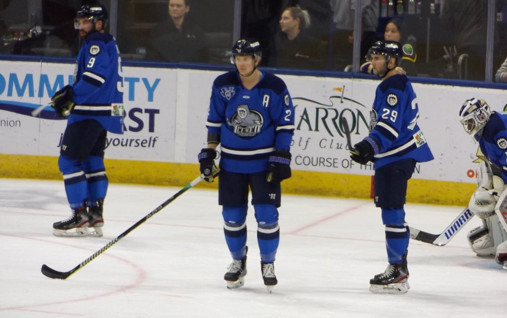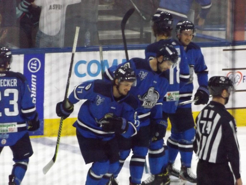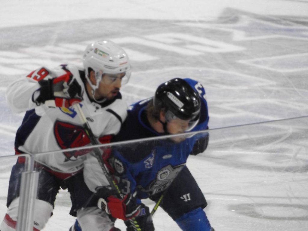 After exchanging pleasantries during the pregame warmup – leftovers from Sunday’s clash in North Charleston – the Icemen jumped out to a two goal lead before the first period was half over. At the 2:47 mark, Luke Lynch took a feed off the side boards and skated toward the back of the net. He somehow managed to get the puck to the front where Travis Howe, known more for his physical play than scoring, rammed it past South Carolina goalie Cedrick Andree for his first goal of the season.