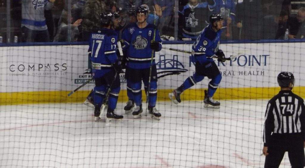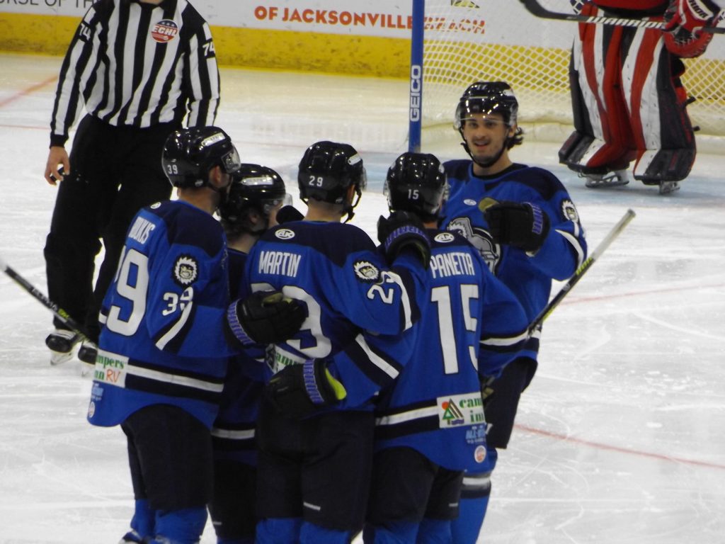 Before the middle stanza ended, Jacksonville bumped its lead back to three goals. At the 13:34 mark, Jacob Pinetta led a charge into the South Carolina end. He slipped a pass to newly signed Bauer Neudecker, who went in alone and scored a pretty top shelf goal for his first in his first game with the Icemen.