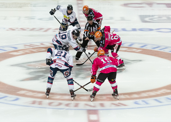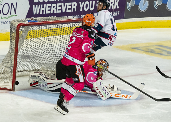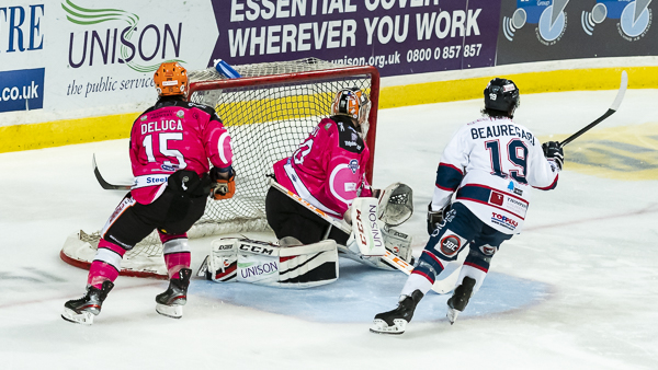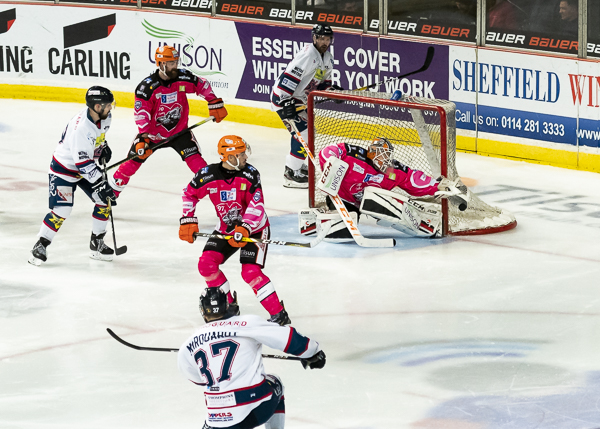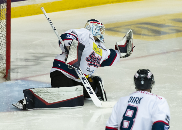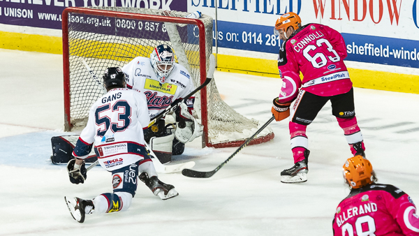 Then straight away, Sheffield had a chance at the other end as Anthony DeLuca skated the puck forward but Dundee netminder, Alex Leclerc came up with a big double save to keep the home side out.