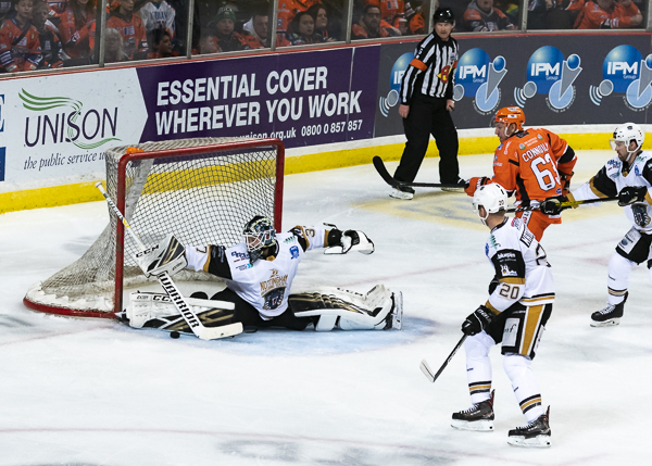 Carr, who made 21 saves in a man of the match performance, denied O’Connor and Bettauer on good scoring opportunities but the Steelers couldn’t find a way through a determined Nottingham Panthers team and the visitors took the points in a dominant victory over their rivals on Saturday night.