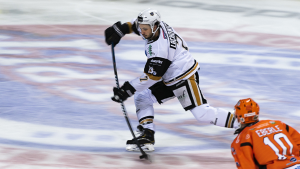 Less than two minutes after the Steelers’ goal the Panthers found themselves back on the powerplay and Captain Sam Herr (24.54), after great patience from Mark Matheson, swept a rebound beyond Duba to restore his side’s lead.