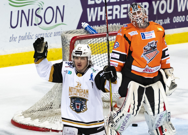 Carr, who made 21 saves in a man of the match performance, denied O’Connor and Bettauer on good scoring opportunities but the Steelers couldn’t find a way through a determined Nottingham Panthers team and the visitors took the points in a dominant victory over their rivals on Saturday night.