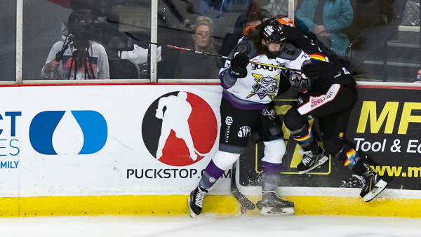 Manchester levelled through Mario Puskarich 2:37 into the middle frame before then taking the lead. The visitors’ go-ahead goal owed much to the hard work of Jared Aulin in the corner to turn the puck over, and his feed allowed Frankie Melton to direct into the net for his first Storm goal at 29:01. John Armstrong tied the game up just seven seconds after the Storm had killed off Mathieu Gagnon’s penalty at 34:54 to ensure the scores remained tied heading into period three.