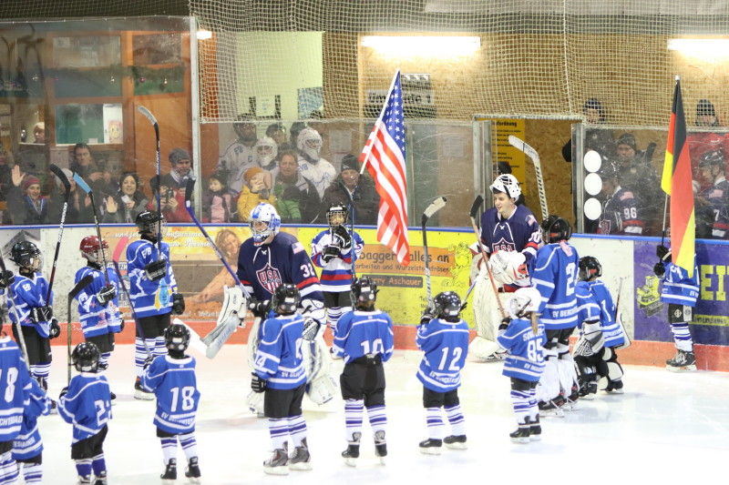 The home team, just like the Baden Rhinos the night before, used the friendly as an opportunity to do some fundraising for cancer. After the game was complete, several of the host players visited with Team USA in the locker room, prior to the whole Berchtesgaden team joining Team USA and their families for dinner at a local restaurant.
