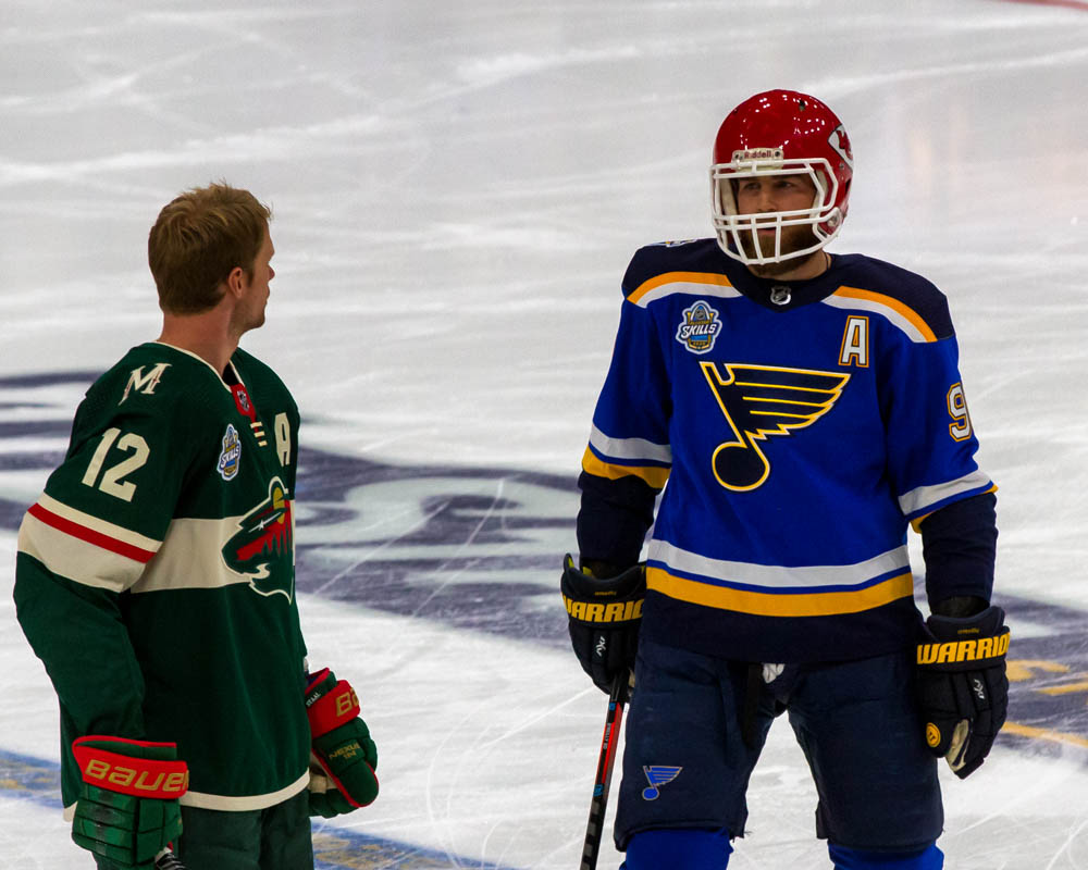 As St. Louis’ Alex Pietrangelo’s targets appeared, the #24 showed up in the lower right corner target. It led fans to wonder why, but it didn’t take long for Blues Hall of Famer Bernie Federko, who wore #24, to appear on the ice in skates. The former Blues captain fed the current Blues captain pucks to fire at the targets. Pietrangelo then reset things and took 13.63 seconds to hit all five targets, allowing Slavin to win the event.