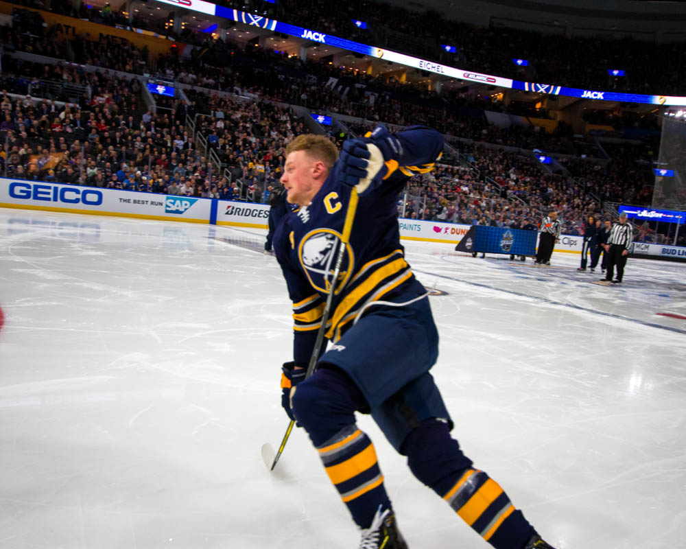 Philadelphia Flyer speedster Travis Konecny was next. He started strong but appeared to lose speed around turn 3 finishing with a 14.113 time. Speedy Jack Eichel of Buffalo switched to clockwise and really had good strides throughout, finishing with a 13.54 and nearly knocking Kreider off his perch.