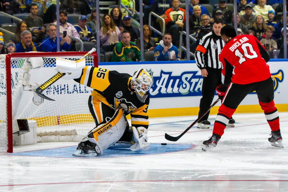 Vancouver’s Jakob Markstrom kicked things off facing the Central Division stopping 5 consecutive saves. Pittsburgh’s Tristan Jarry faced the Atlantic Division shooters finishing with a streak of 4 saves in a row.