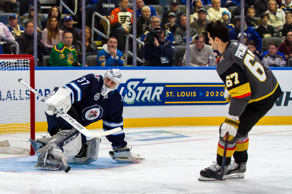 St. Louis’ David Perron was first scoring 14 total points in what was a remarkable start to a unique event. Toronto’s Mitch Marner was next, registering 22 points including two shots which hit the 10-point Gateway Arch target positioned at center ice. Canada’s Mari Philip-Poulin represented the Women’s Elite All-Stars and scored 15 points.