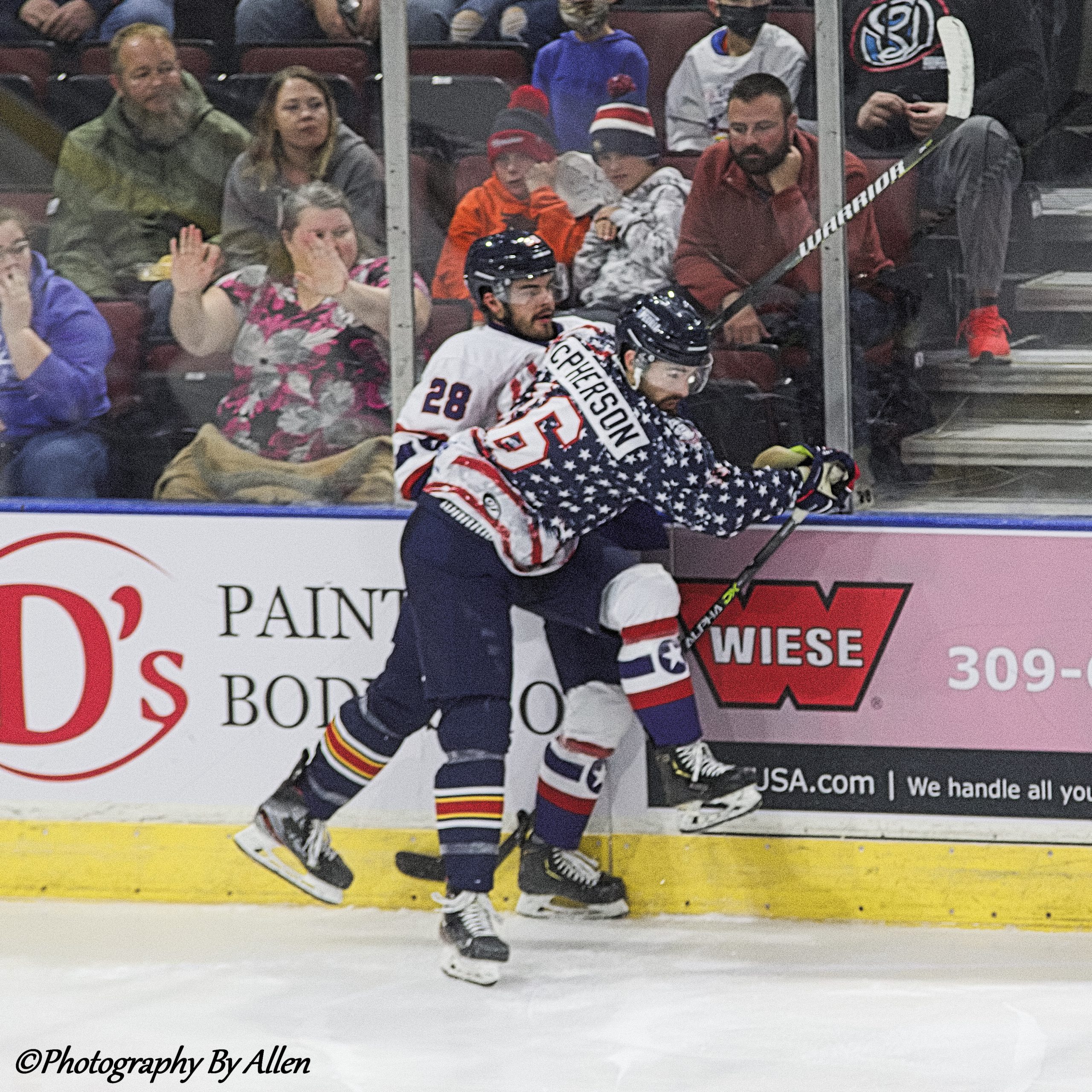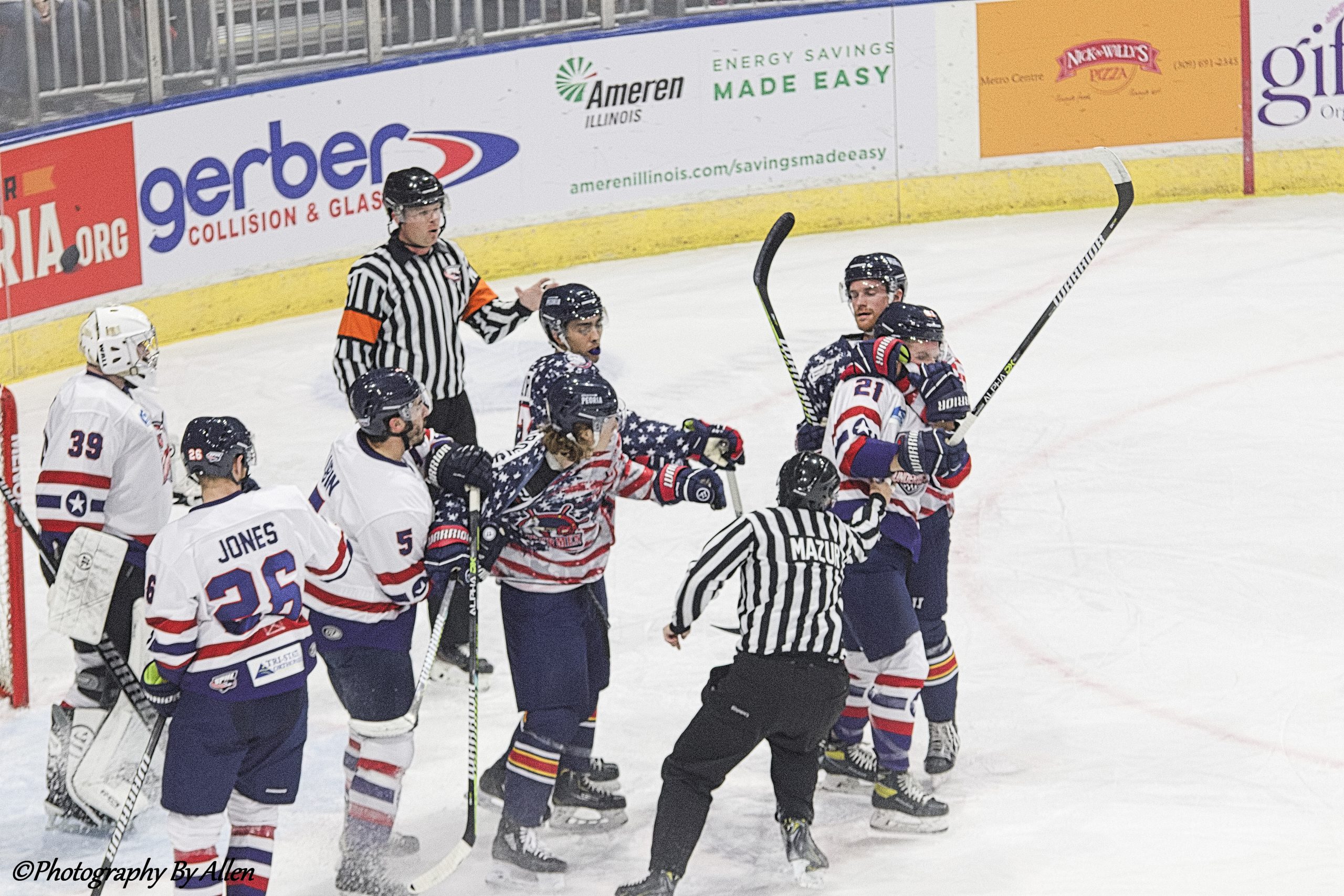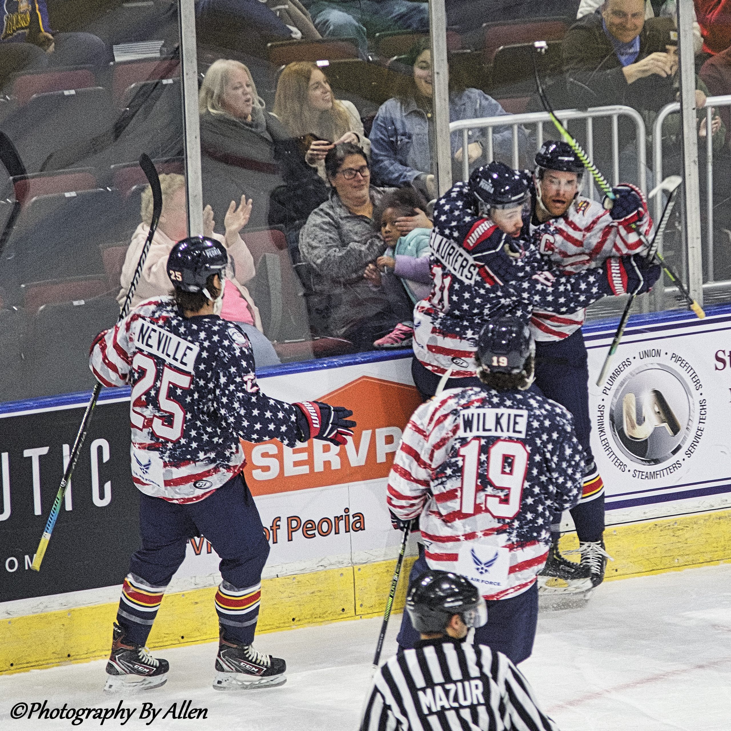 In the final minute of regulation, facing six attackers and an empty net in front of him. Hagaman won a key face-off to himself in his own zone. He was able to get the puck just shy of his own blue line and sent a shot all the way down the ice and into the empty net. Hagaman’s second goal of the game sealed a hard-fought and emotional 3-1 victory for the Rivermen. With the win, Peoria improves to 3-2-0-0 on the season and 3-1 at Carver Arena. Just as they were able to get a little payback against Evansville a week after a loss, the Rivermen will look to do the same on the road against Quad City on Friday night (November 12) starting at 7:10 pm.
