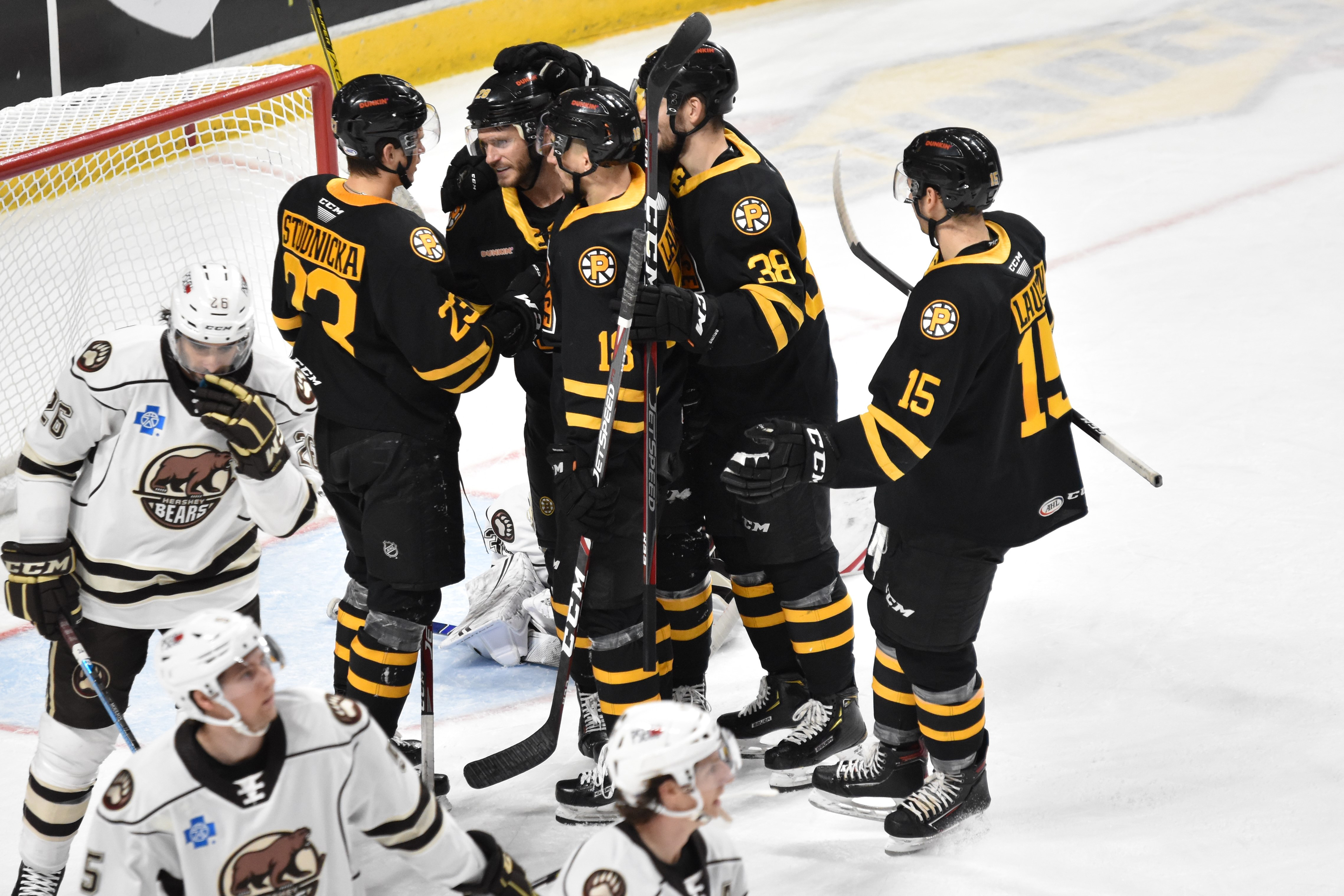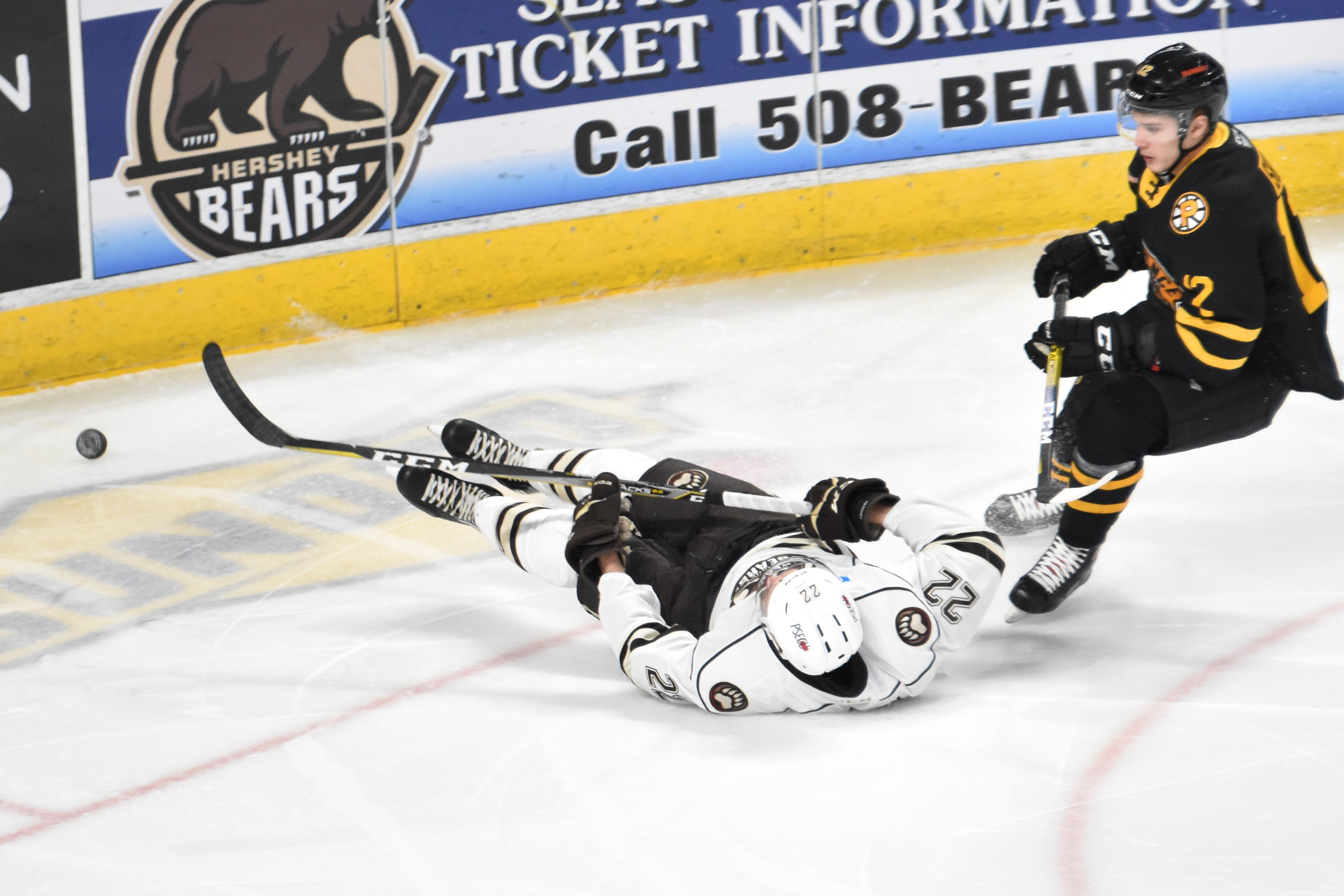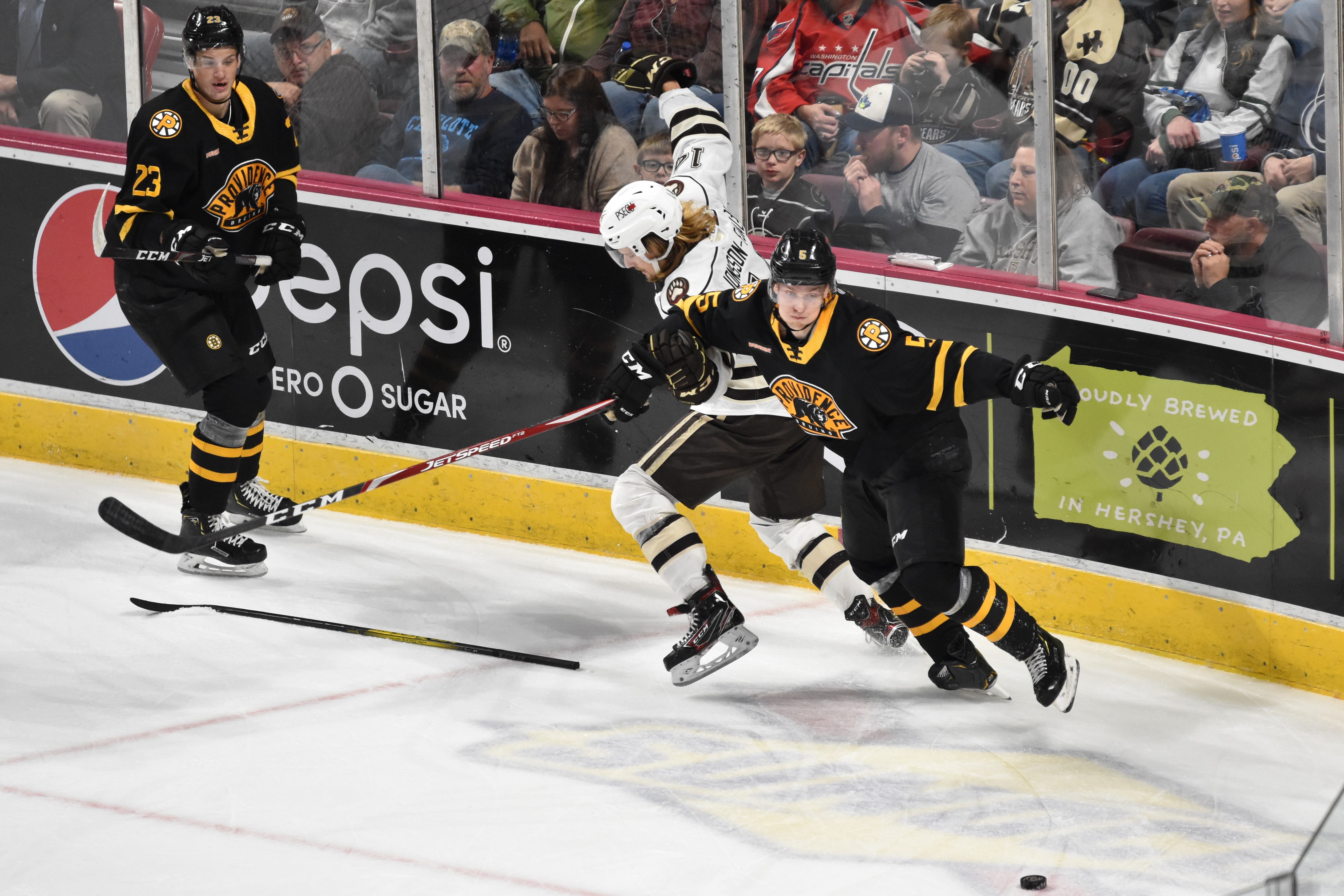 Hershey, PA – – The Hershey Bears returned home to Giant Center on Saturday night and responded with a 5-3 win over the Providence Bruins. Brian Pinho and Garrett Pilon scored 17 seconds apart in the third period, and the penalty kill went a perfect 6-for-6 to help lift Hershey late.