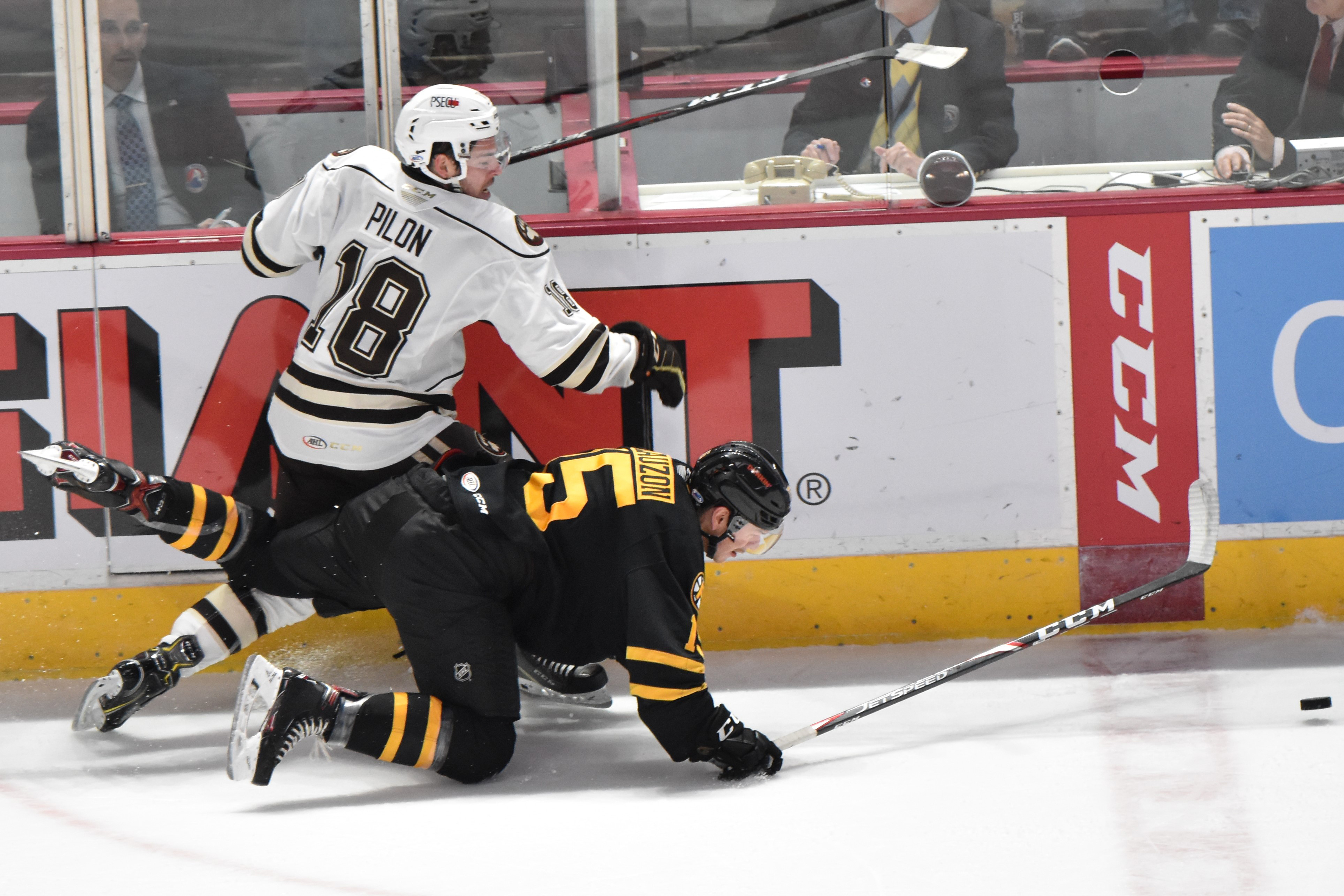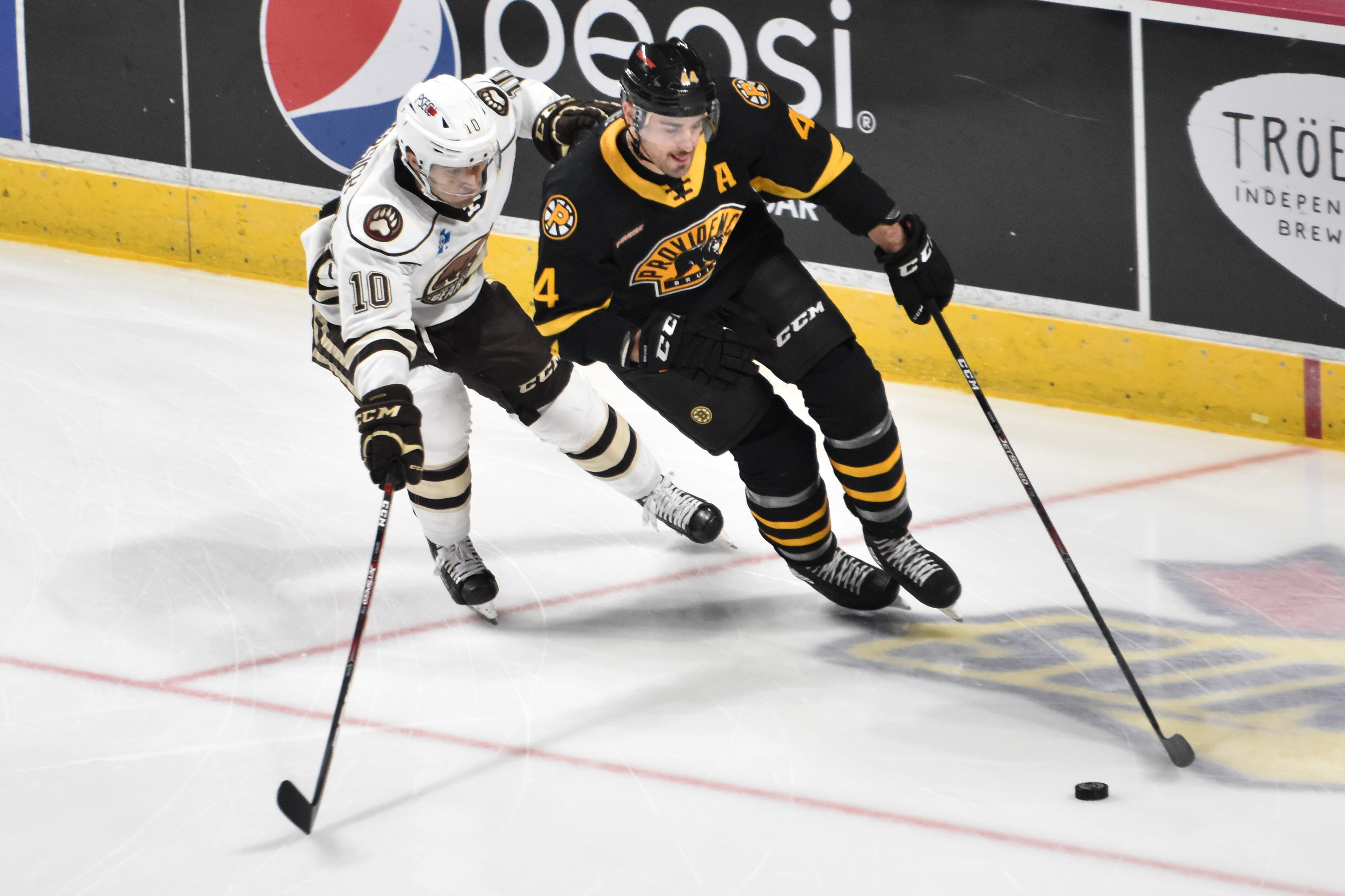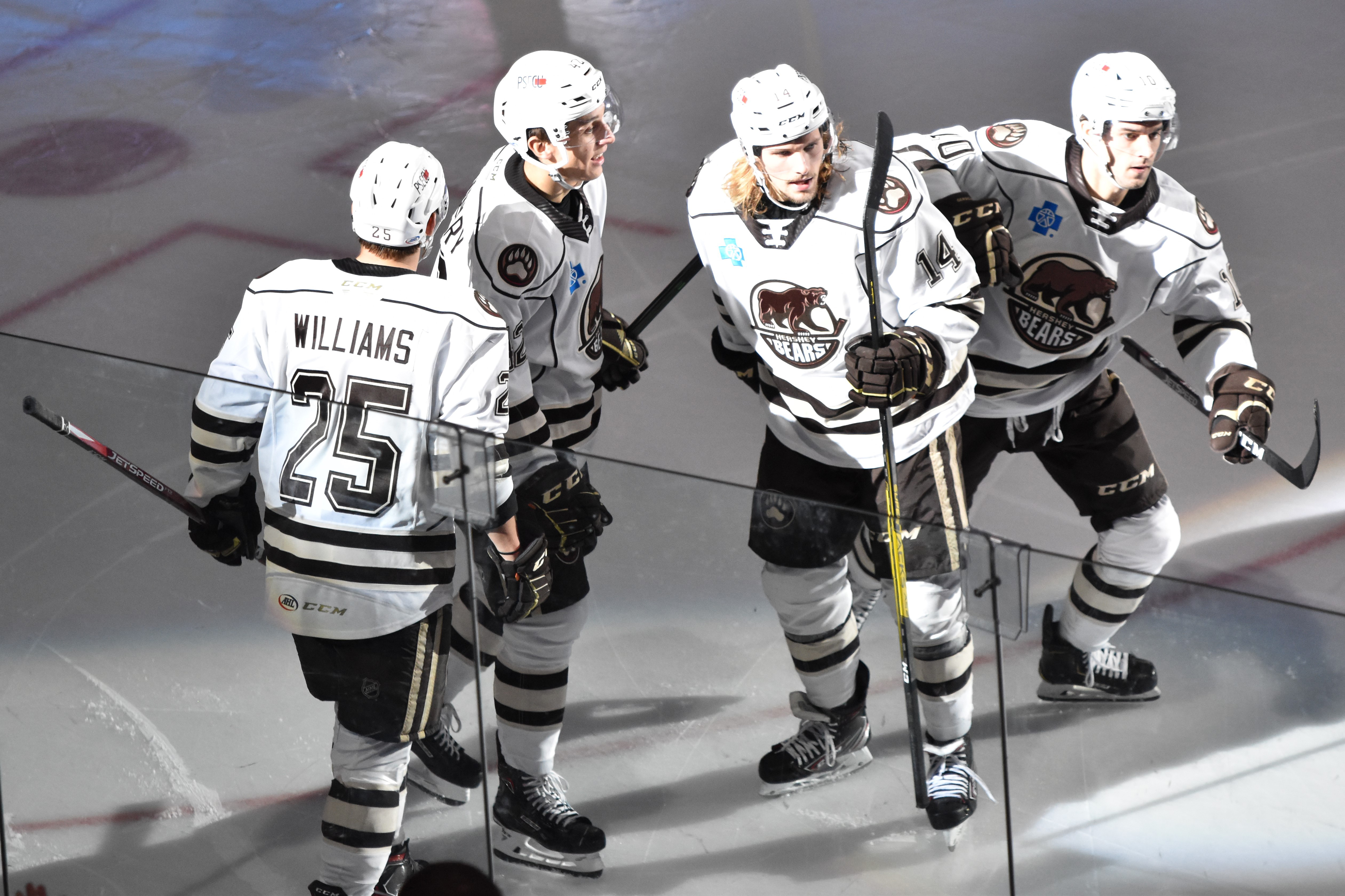 Hershey, PA – – The Hershey Bears returned home to Giant Center on Saturday night and responded with a 5-3 win over the Providence Bruins. Brian Pinho and Garrett Pilon scored 17 seconds apart in the third period, and the penalty kill went a perfect 6-for-6 to help lift Hershey late.