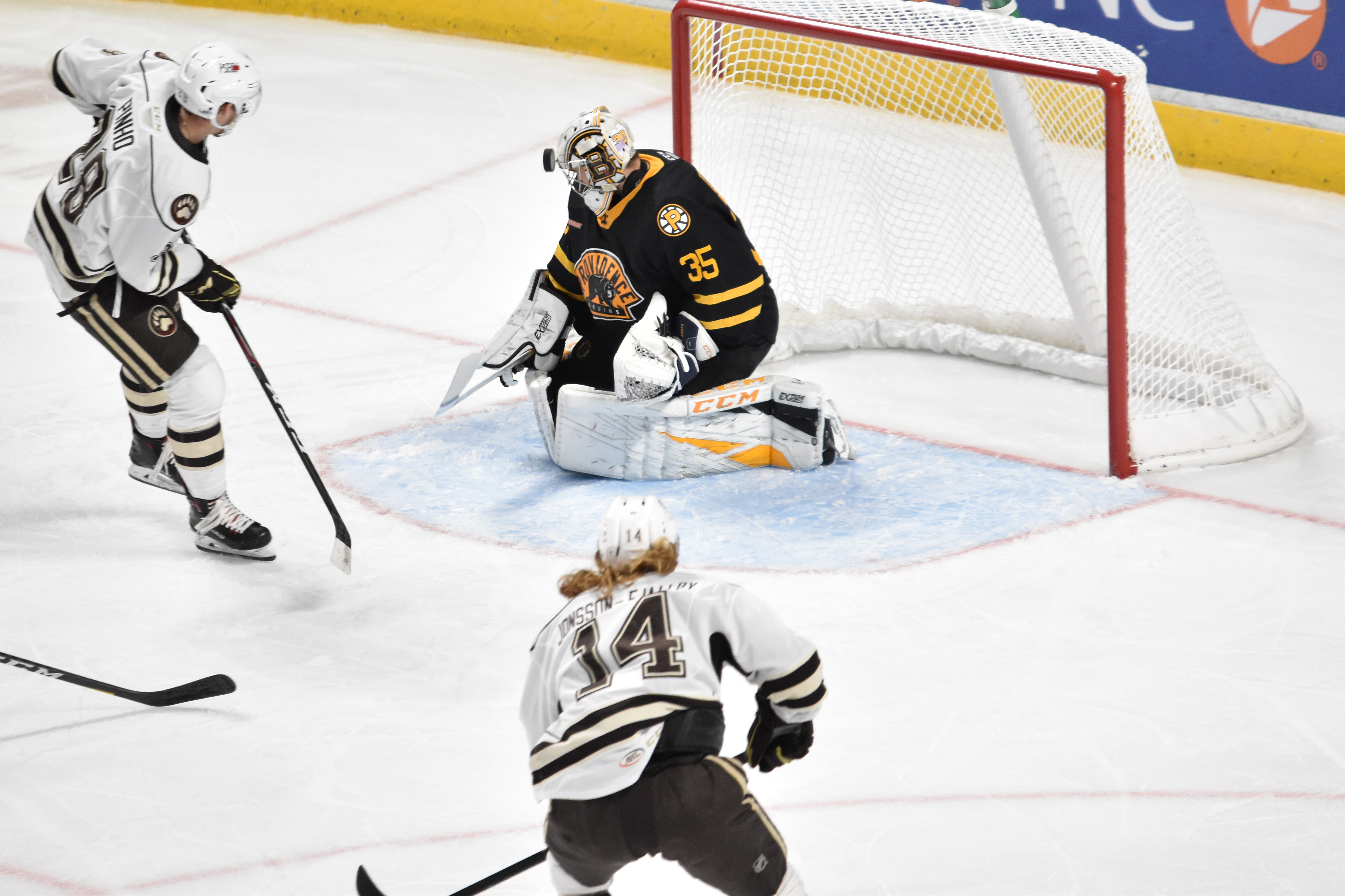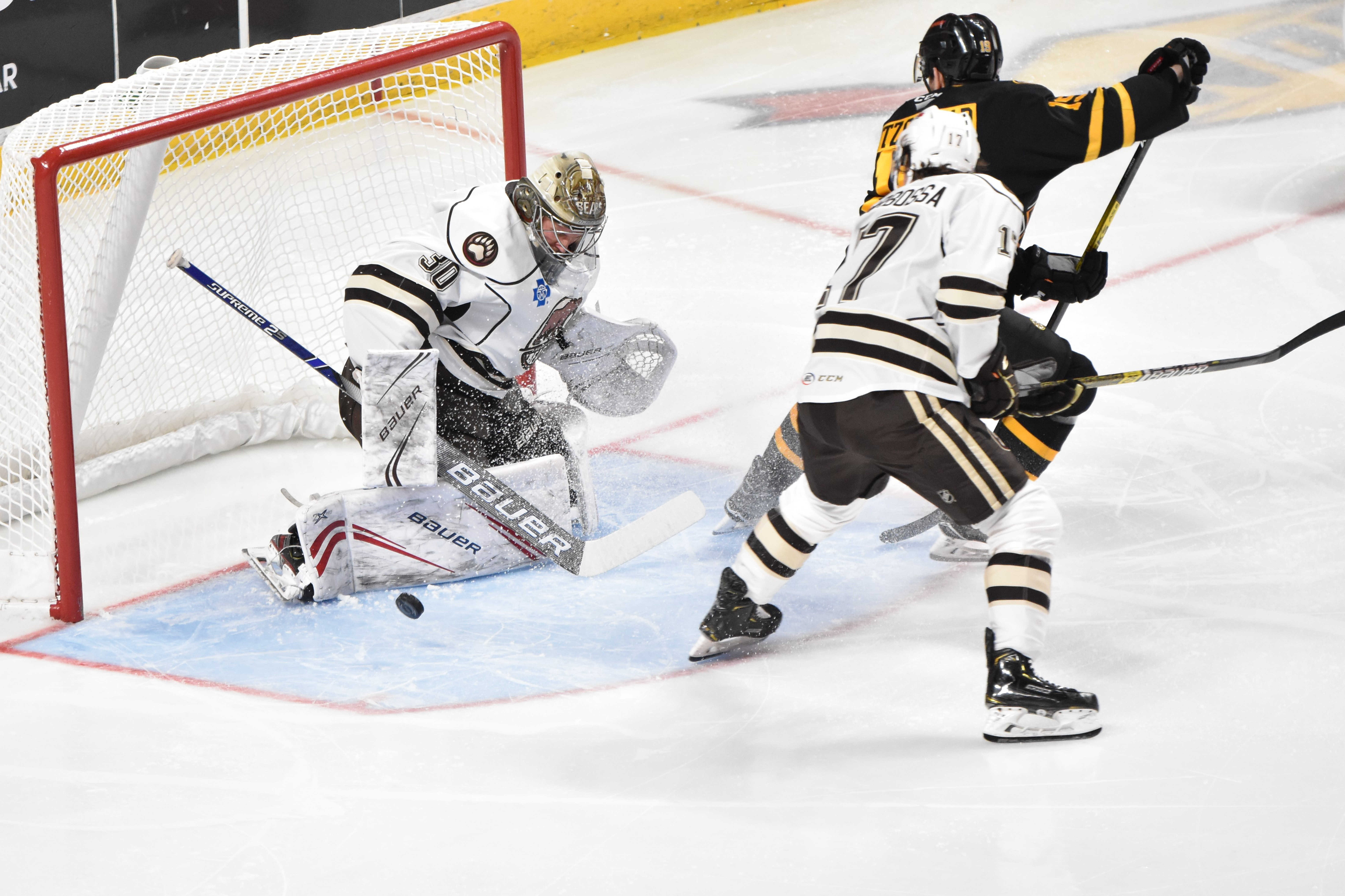 Both teams traded a goal each in the second period to send a 3-3 deadlock into the third. At 1:48, the Bears claimed a 3-2 lead on their league leading fourth shorthanded goal of the season. Fehervary chipped the puck north from his defensive zone to setup a 2-on-1 rush with Axel Jonsson-Fjallby and Shane Gersich. Along the right wing, Jonsson-Fjallby feathered a perfect pass across to Gersich for his first goal of the season. But once again, Providence found an equalizer in the later stages of the frame. At 16:59, Jakub Zboril blasted a shot from the left wing over Vitek Vanecek’s shoulder to tie the game at 3-3. Shots after 40 minutes were 28-14 Bears.