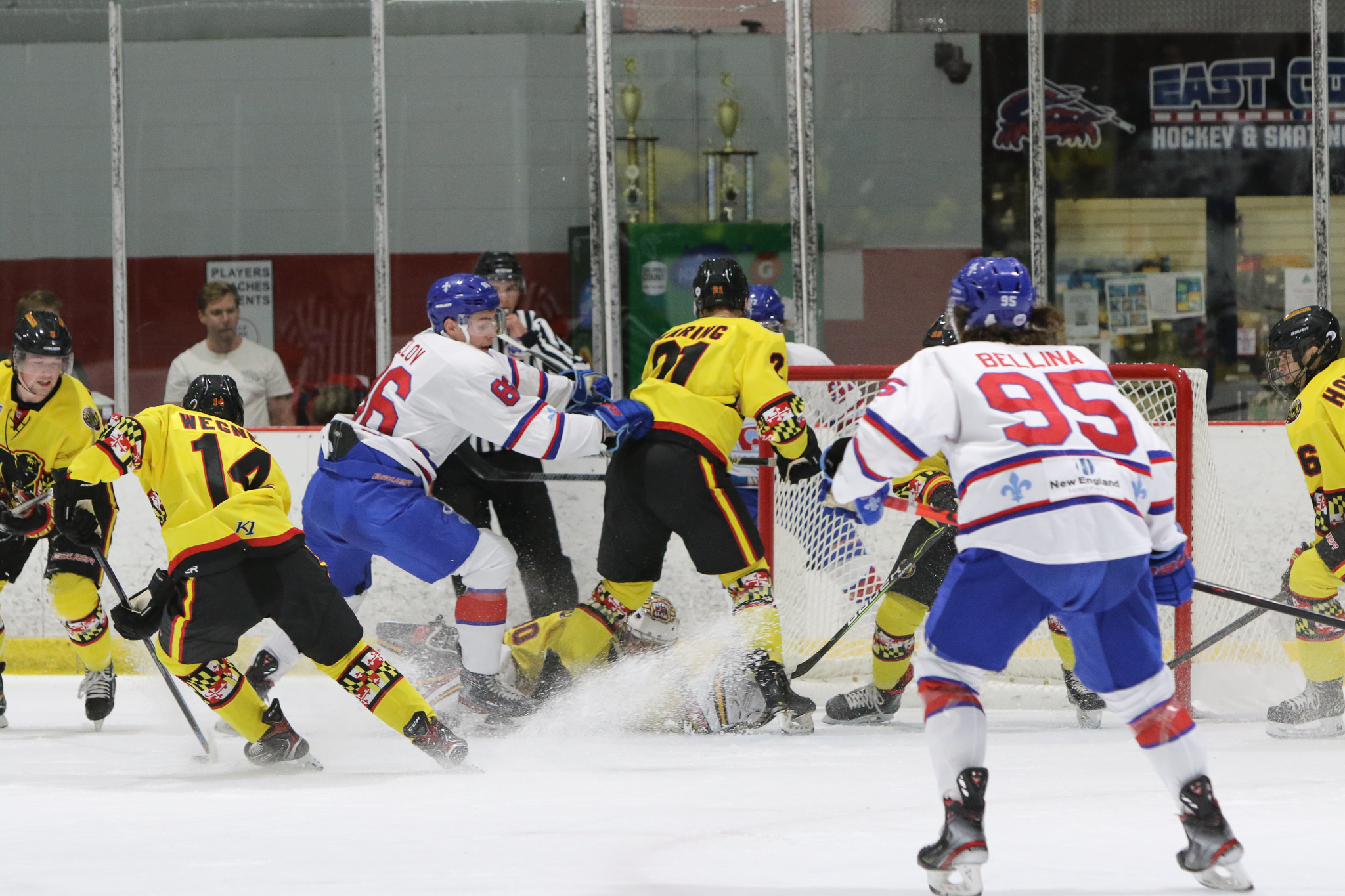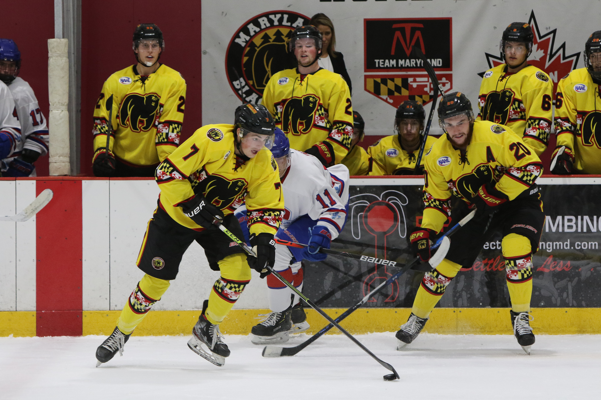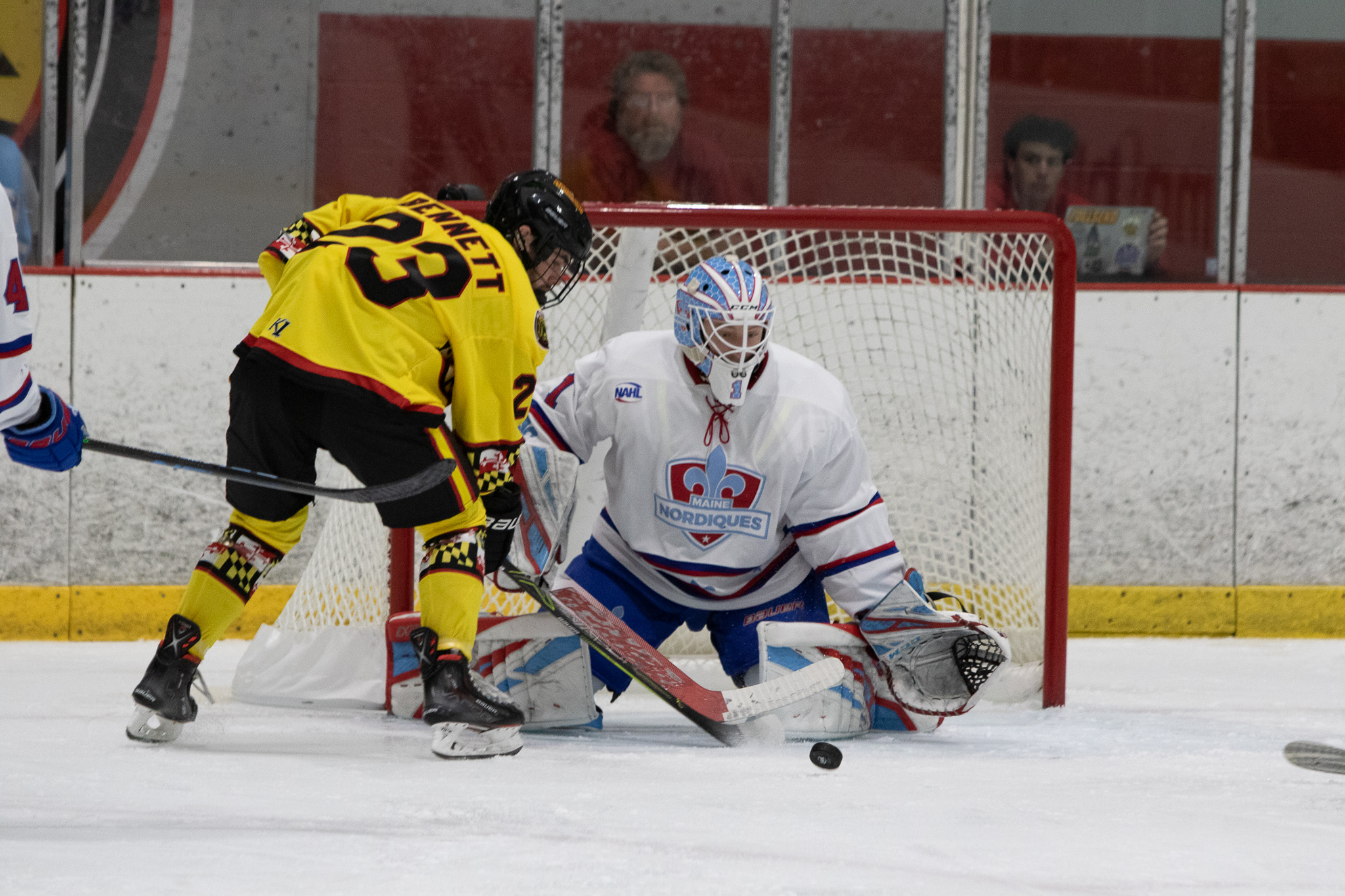 ODENTON, Maryland: The Maryland Black Bears of the NAHL took on the Maine Nordiques at Piney Orchard Arena, coming away with an exciting 5-3 victory. Maryland jumped out to a 2-0 lead in the first, with a goal from Sean Kilcullen and a penalty shot goal by Brad McNeil. Maine would come back with two goals of their own in the first. Nicholas Bernardo scored a power play goal and Dom Marcinkevics scored an even strength goal for the tie in the first.