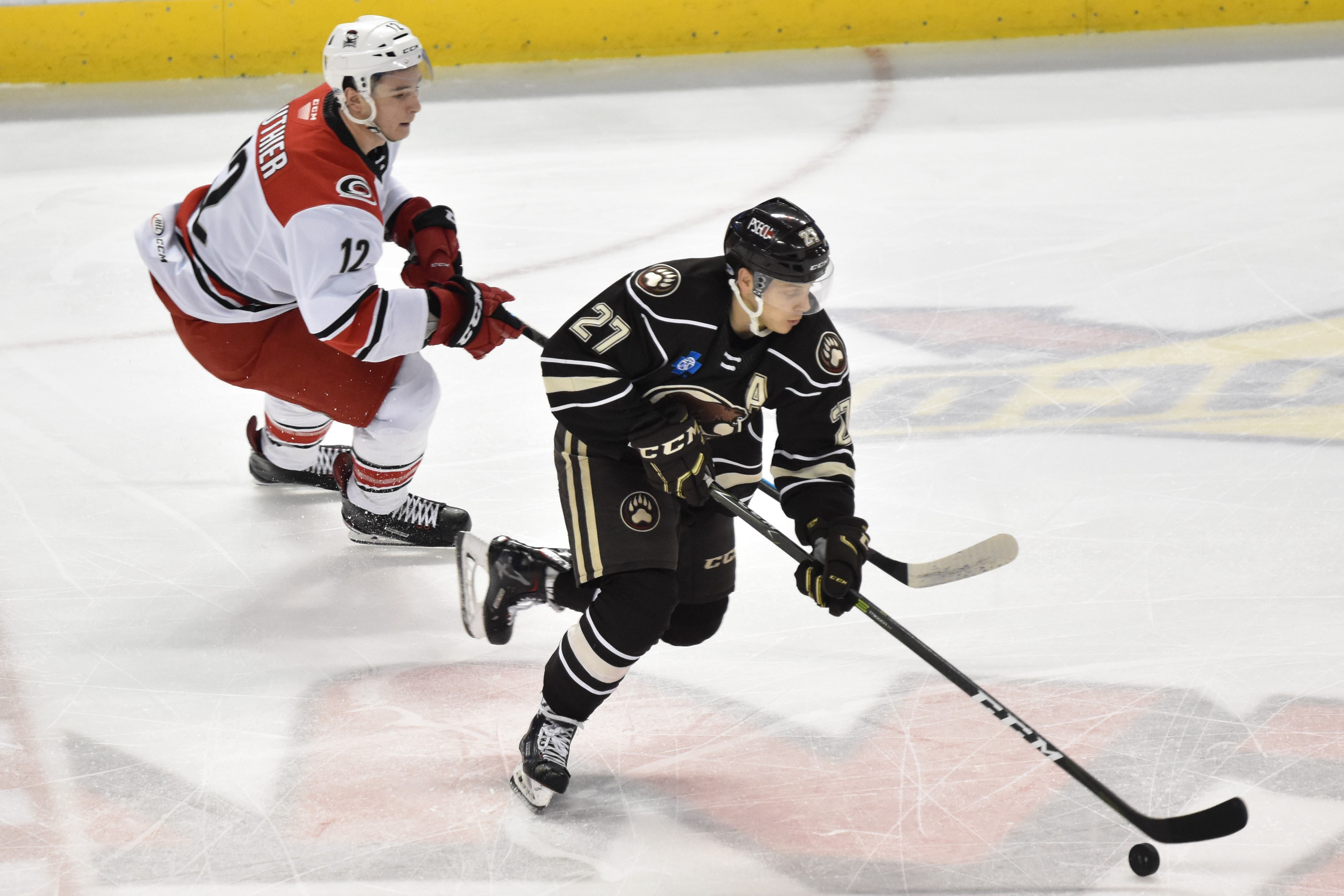 For only the second time in the current point streak, the opposition drew first blood against the Chocolate and White. On a power play, Patrick Brown squeezed a loose puck through the pads of Vitek Vanecek at 14:59 to give the Checkers a 1-0 advantage. The goal came after Beck Malenstyn was whistled for a roughing infraction at 13:06. Charlotte carried their 1-0 lead into the dressing room with a 7-5 shot advantage after 20 minutes.