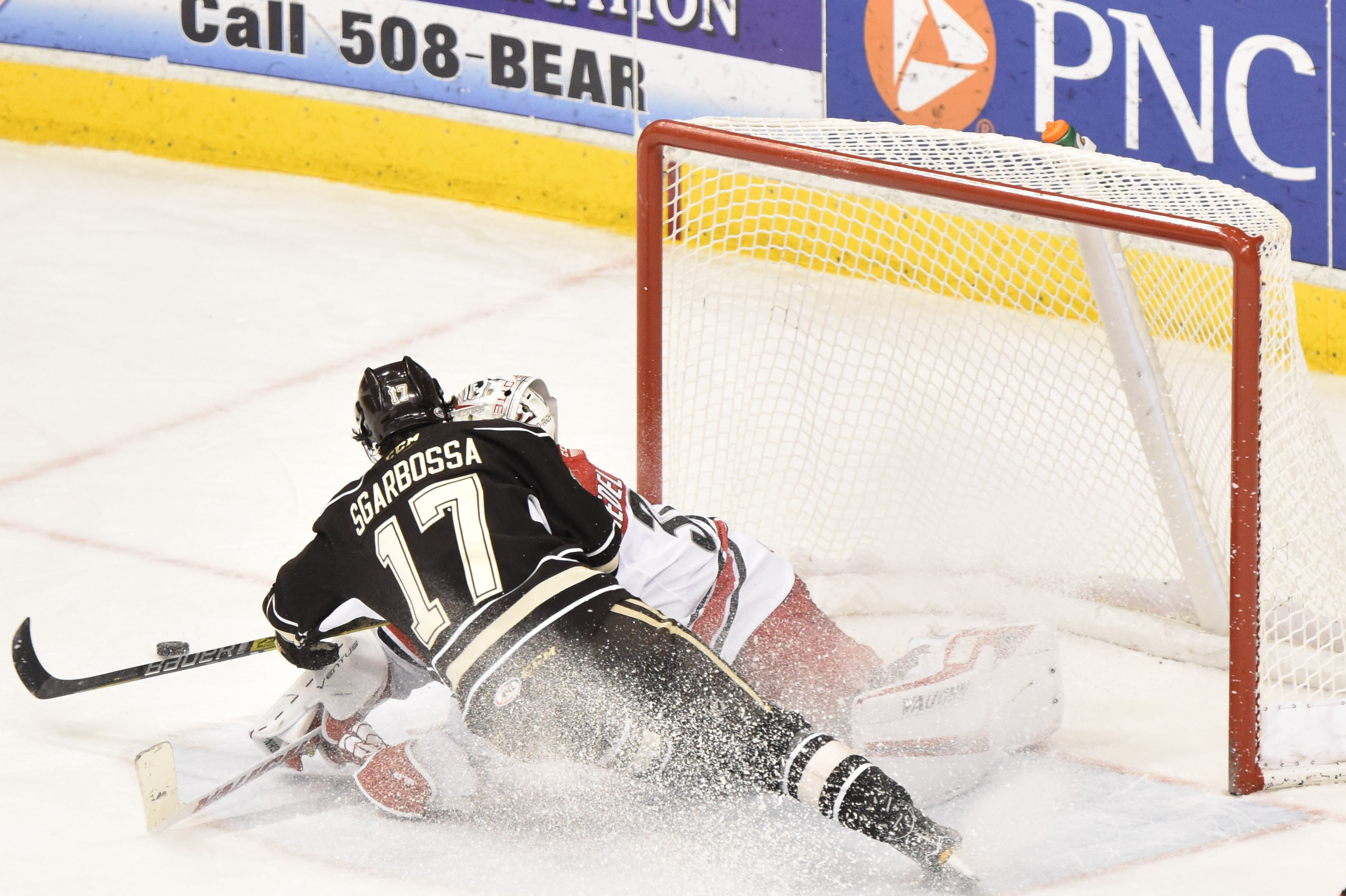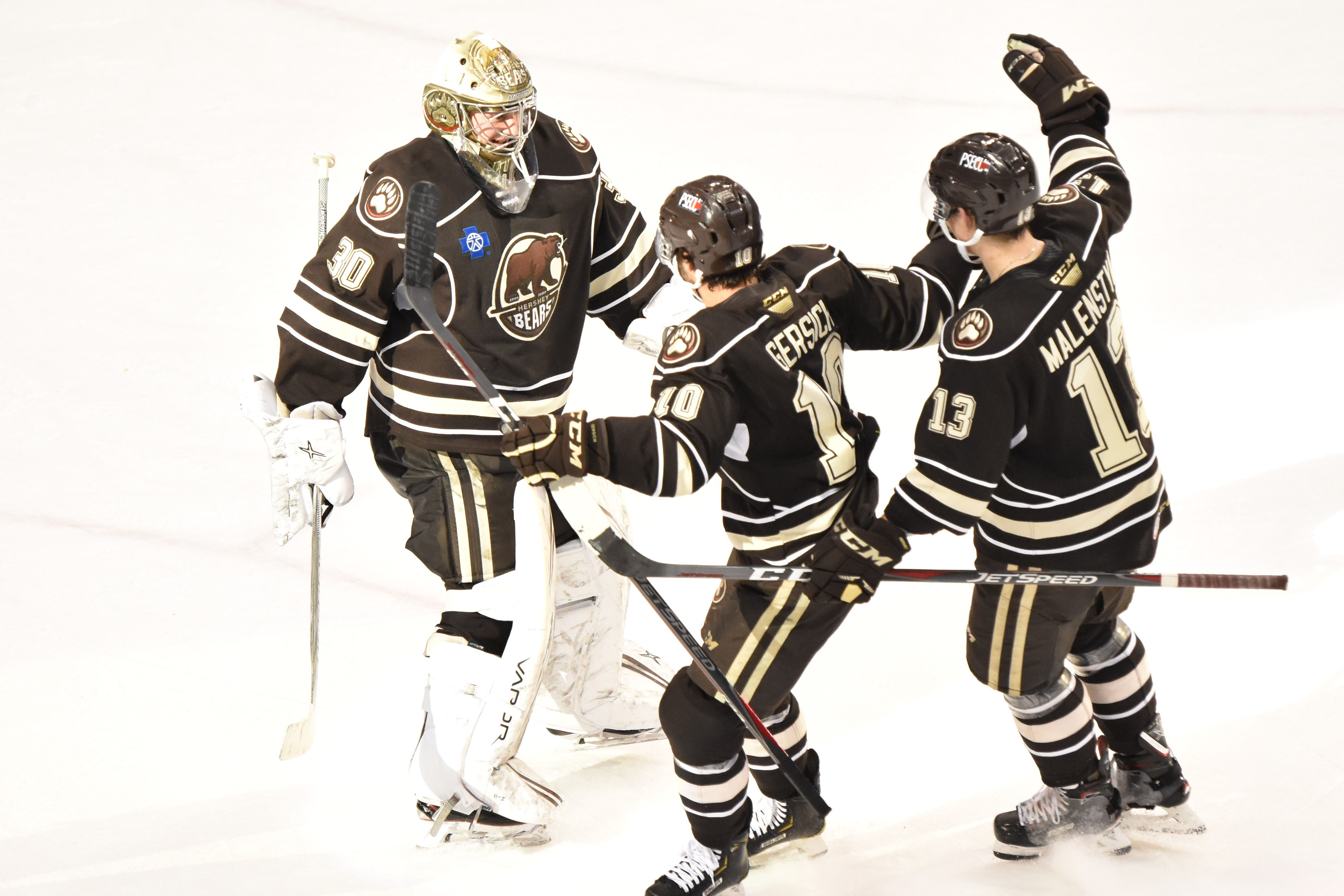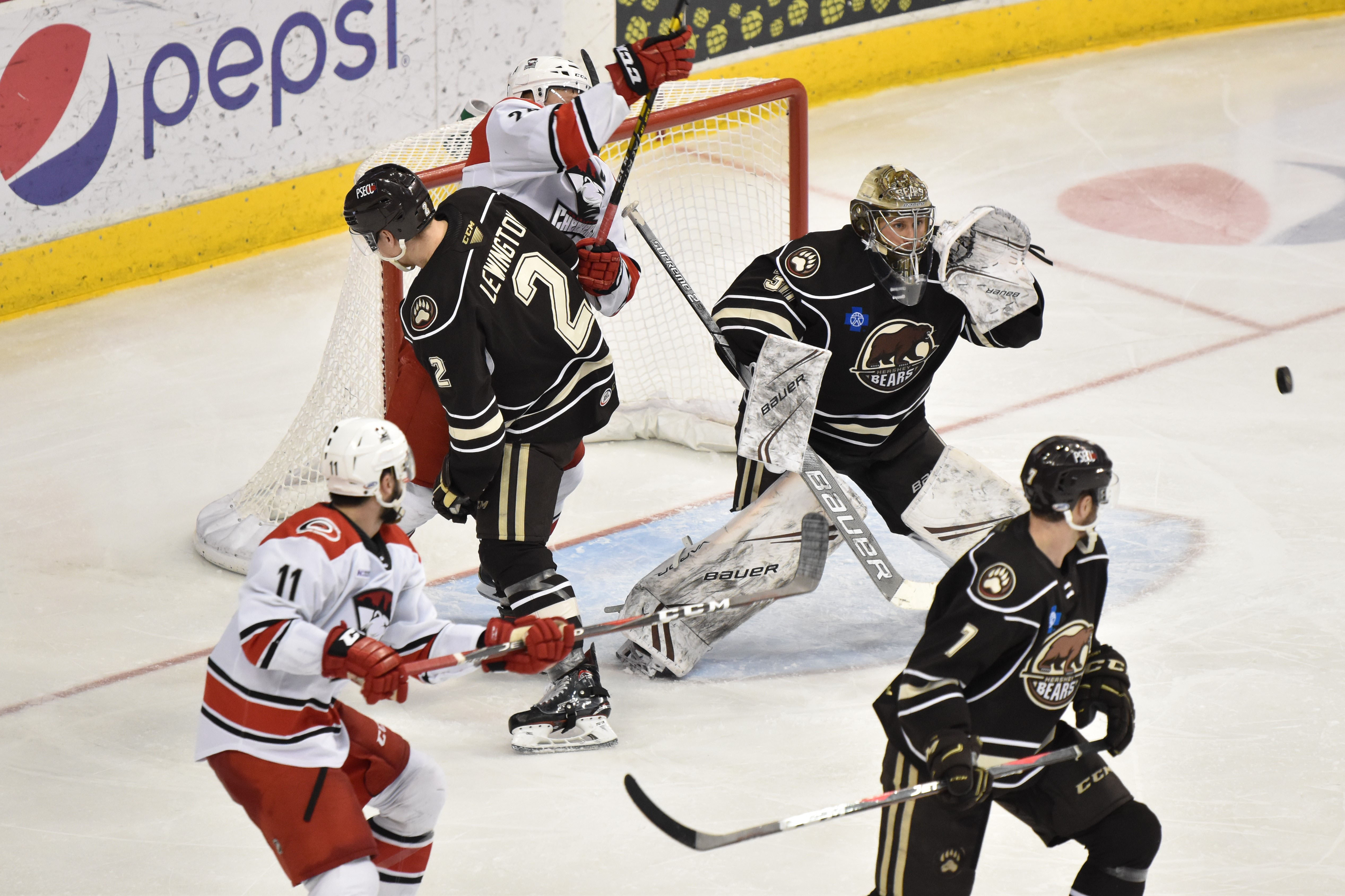 Into the third period, the Checkers grabbed a late 2-1 lead courtesy of another special teams goal. On Hershey’s third minor penalty of the frame, Jake Beam took advantage and blasted his 10th goal of the season at 12:48. In the final two minutes, Vanecek vacated the Bears net in favor of the extra attacker. Barber sent a crowd of 9,182 at Giant Center into a frenzy with his 20th goal of the season in a clutch moment.