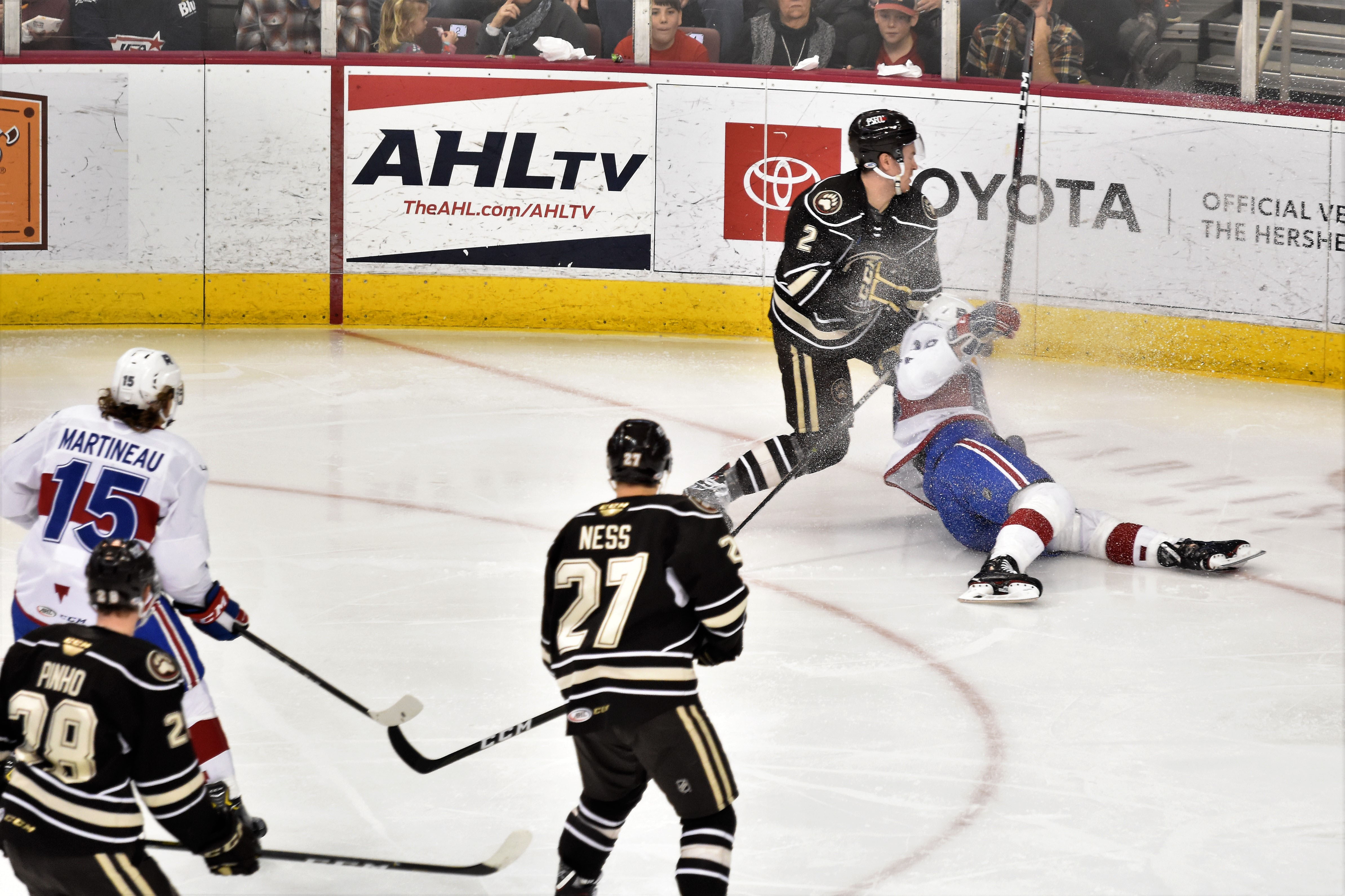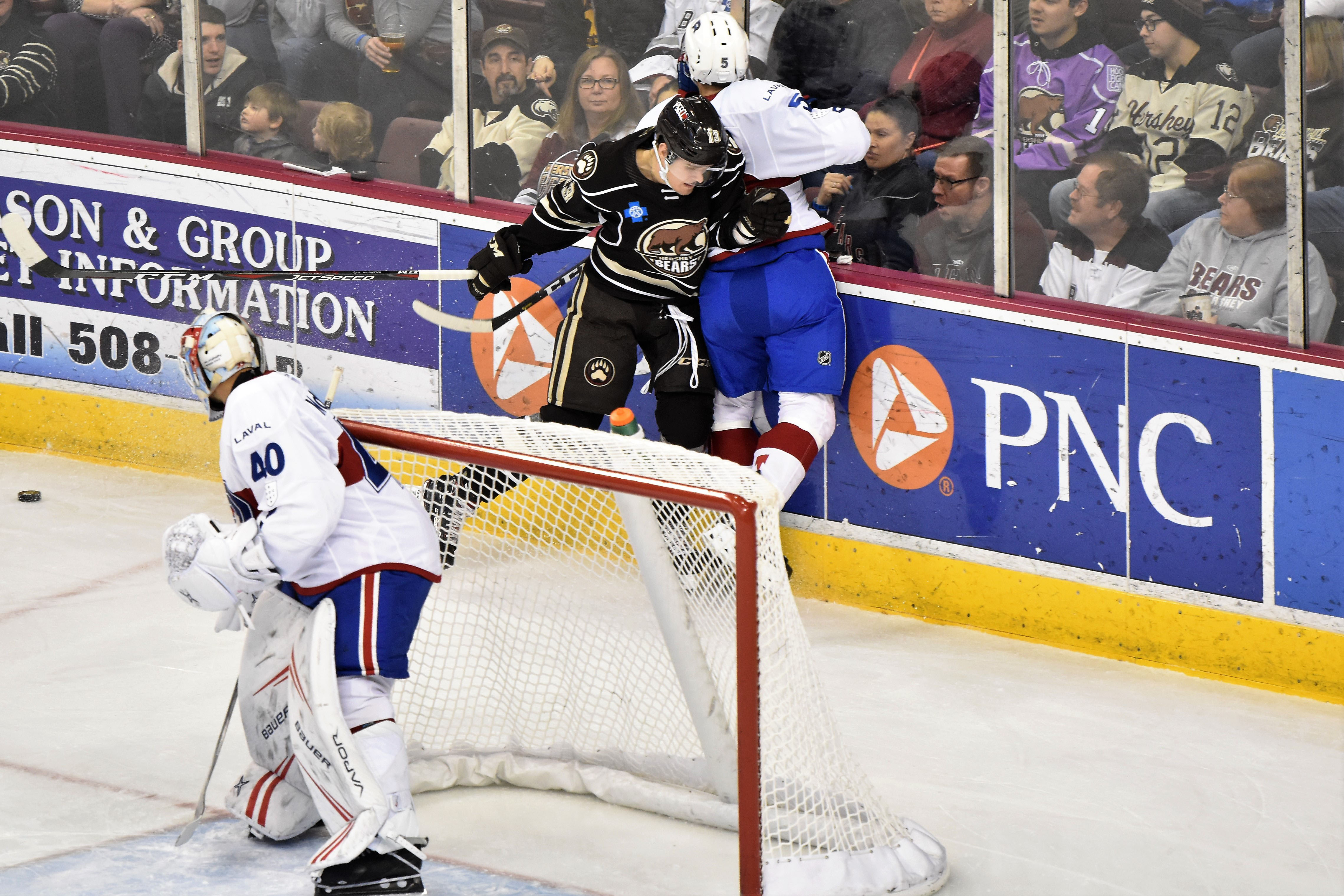 Nathan Walker opened the scoring for the Bears only seconds into their first power play opportunity of the night. Phelix Martineau was whistled for boarding at 6:34, and the Chocolate and White immediately went to work in the offensive zone after winning the ensuing face-off. Walker buried a backdoor pass from Mike Sgarbossa into an open cage to start the scoring at 6:56. Shots after 20 minutes were 8-7 Hershey with a 1-0 lead in tact.