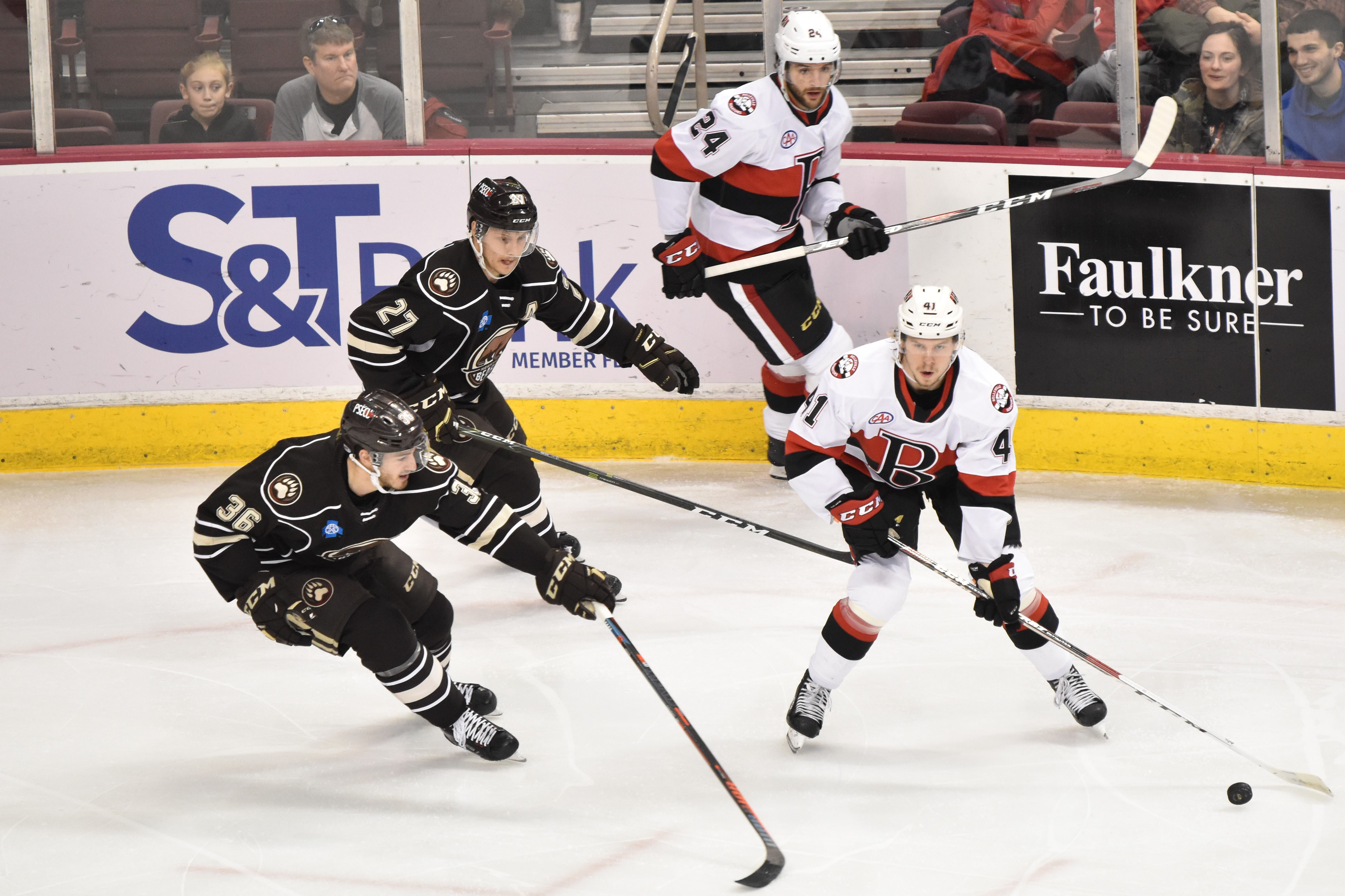 The Hershey Bears closed the weekend with a 3-2 shootout win over the Belleville Senators on Super Bowl Sunday at Giant Center. Riley Barber scored the lone goal in the shootout, Vitek Vanecek turned aside 27 of 29 shots, and the Bears extended their point streak to nine game in the win.