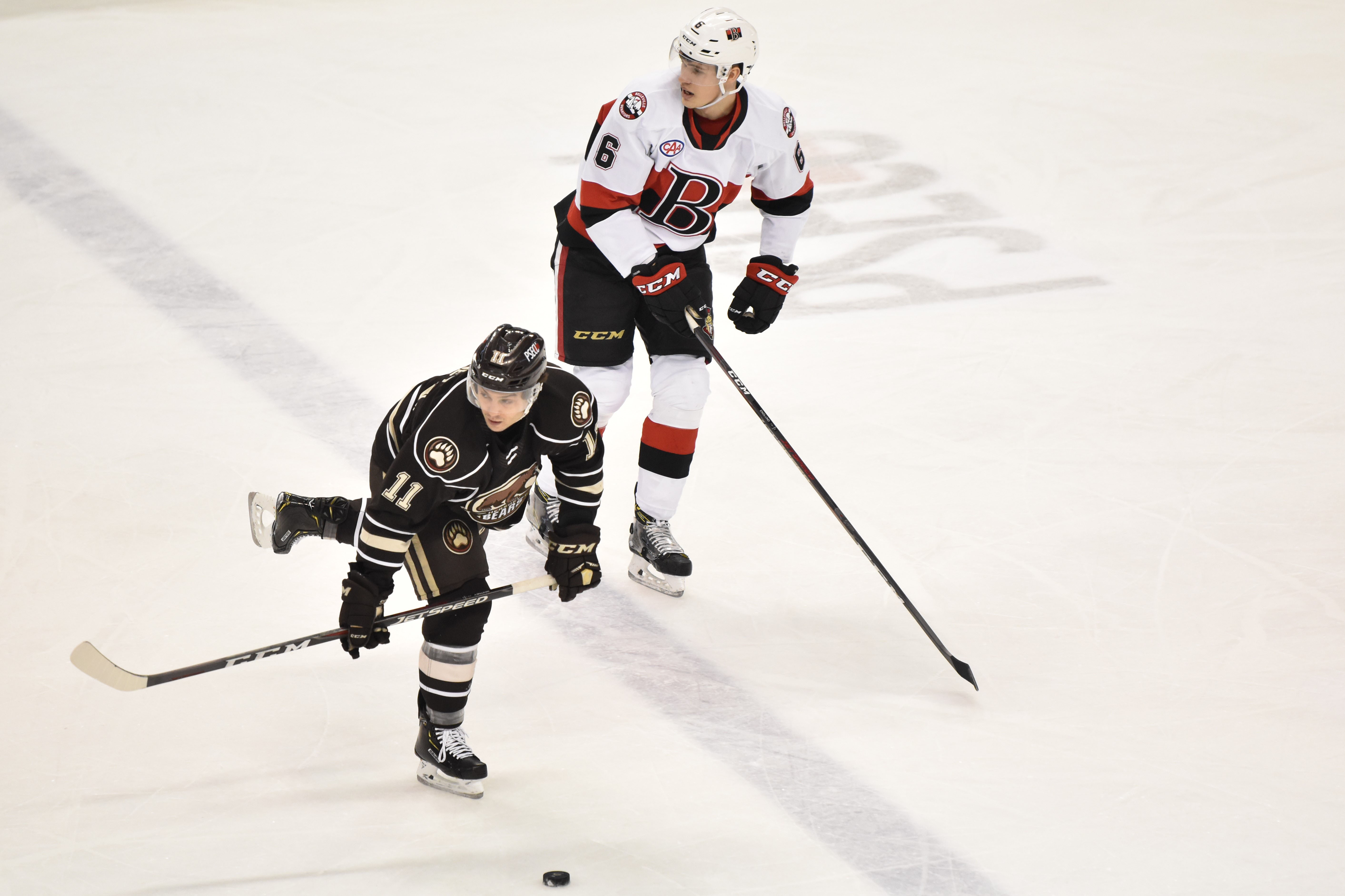 For the 14th time in the last 15 games, the Chocolate and White drew first blood and opened the scoring. At 7:11, Shane Gersich used a burst of speed through the neutral zone to break free behind the defense. A sneaky move beat Senators goaltender Filip Gustavsson five-hole for Gersich’s sixth goal of the season.